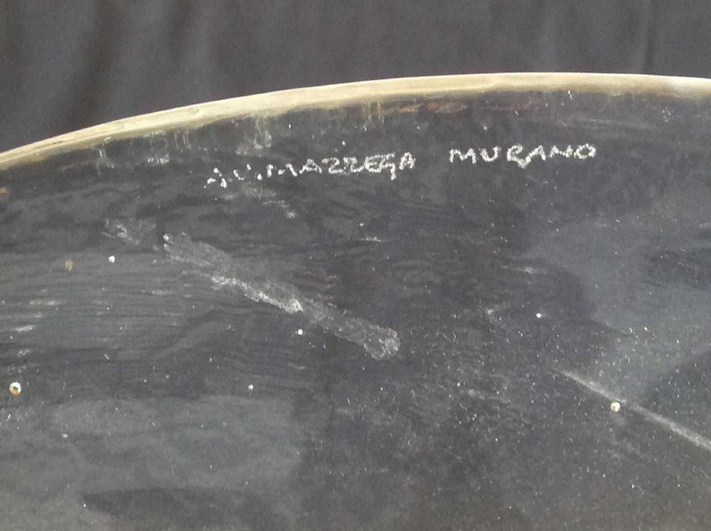 A.V. Mazzega, large disc, likely a unique piece with a brass support, 1970s. Disc diameter cm.40. Perfect state of preservation.