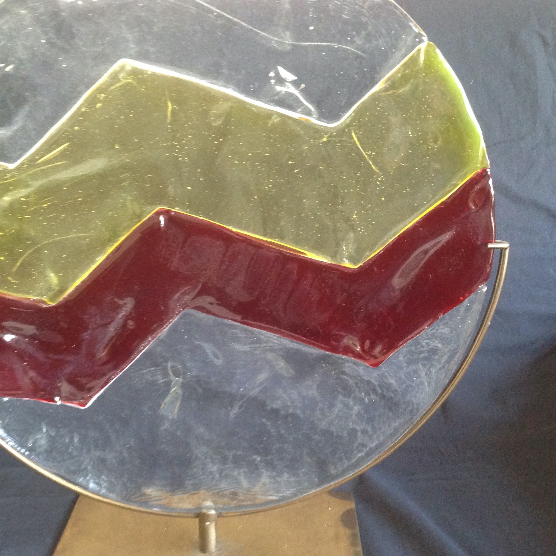 A.V. Mazzega, large disc, likely a unique piece with a brass support, 1970s. Disc diameter cm.40. Perfect state of preservation.