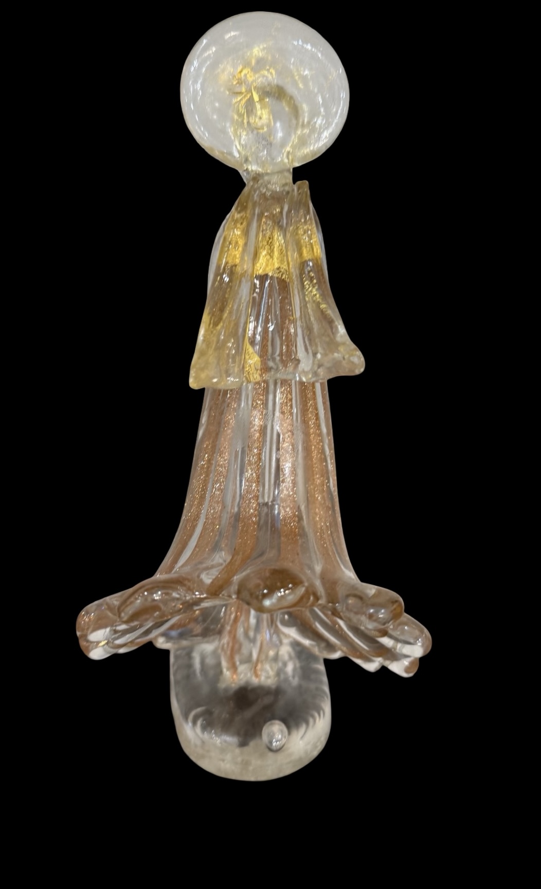 Heavy submerged glass angel candlestick with aventurine vertical bands and gold leaf inclusion. Murano. 23x15x10 cm.