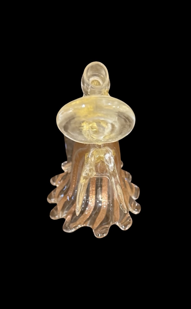Heavy submerged glass angel candlestick with aventurine vertical bands and gold leaf inclusion. Murano. 23x15x10 cm.