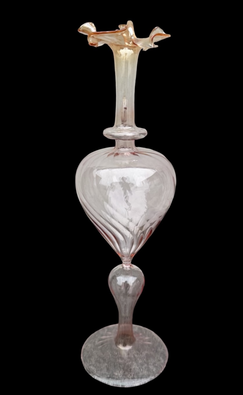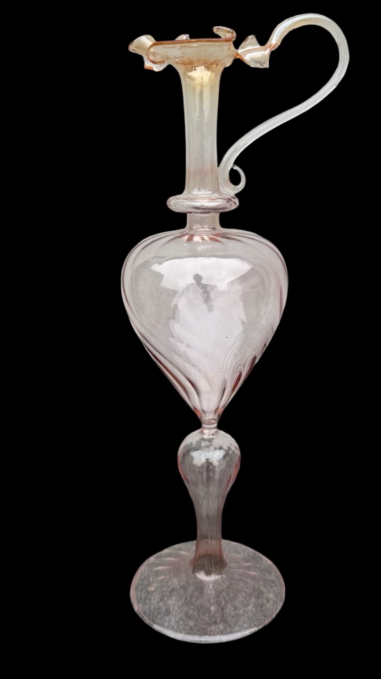 Thin glass amber amaranth ewer. Murano.