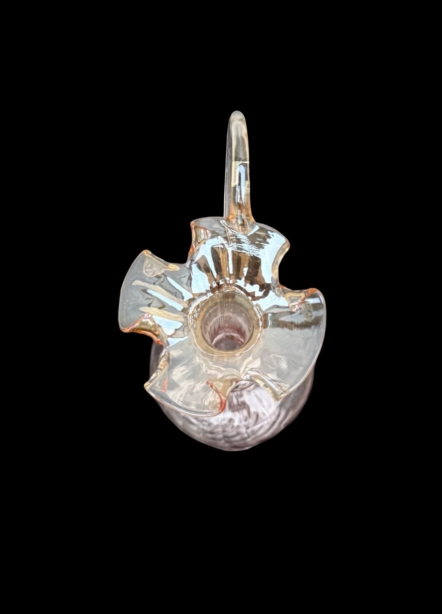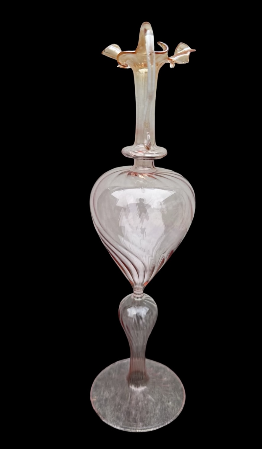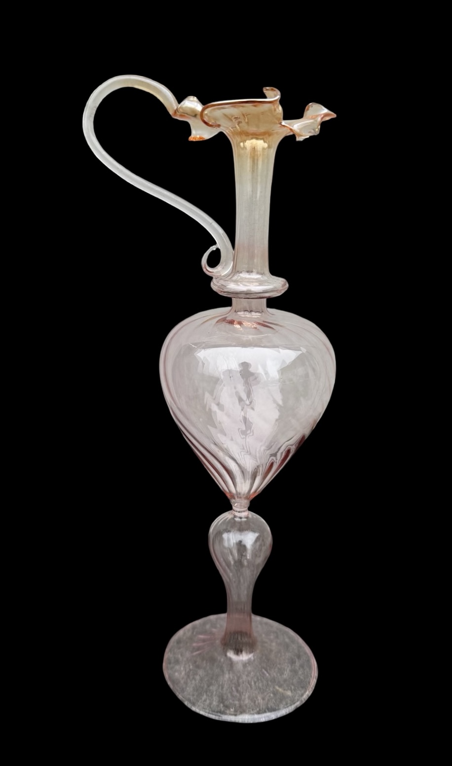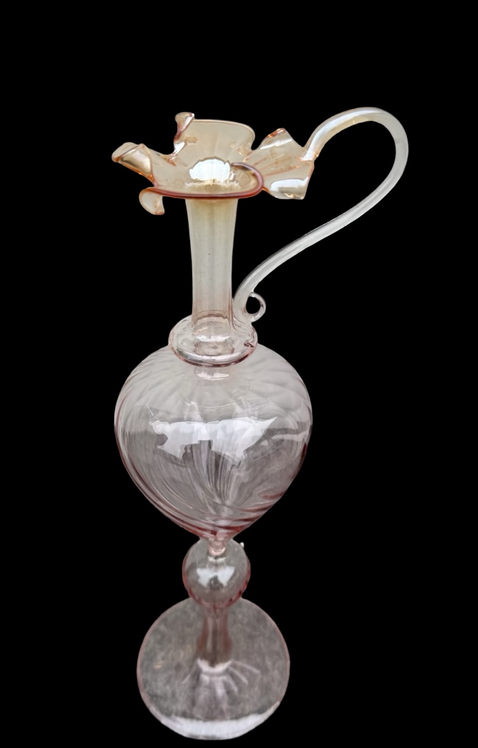Thin glass amber amaranth ewer with slight iridescence. Murano. Cm 26x10x7.