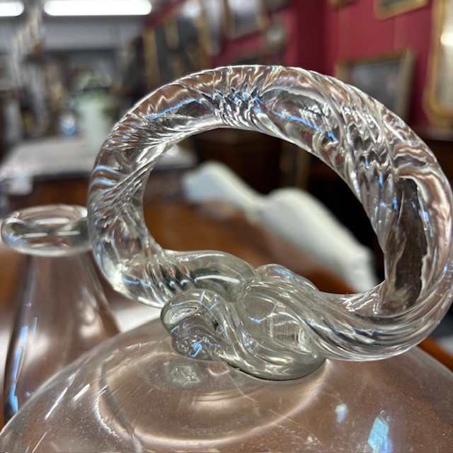 Antique 18th-century blown glass holy water pitcher. Dimensions H 32 W 23.