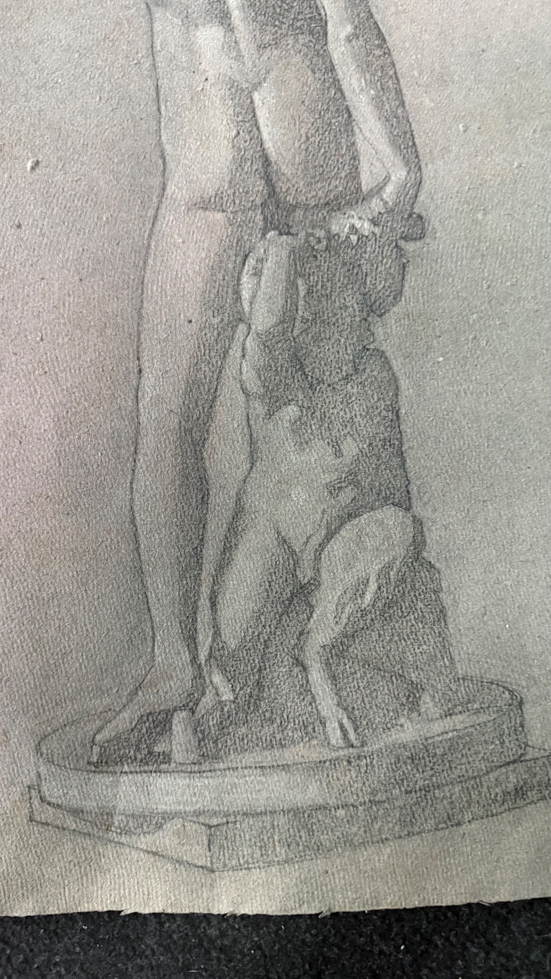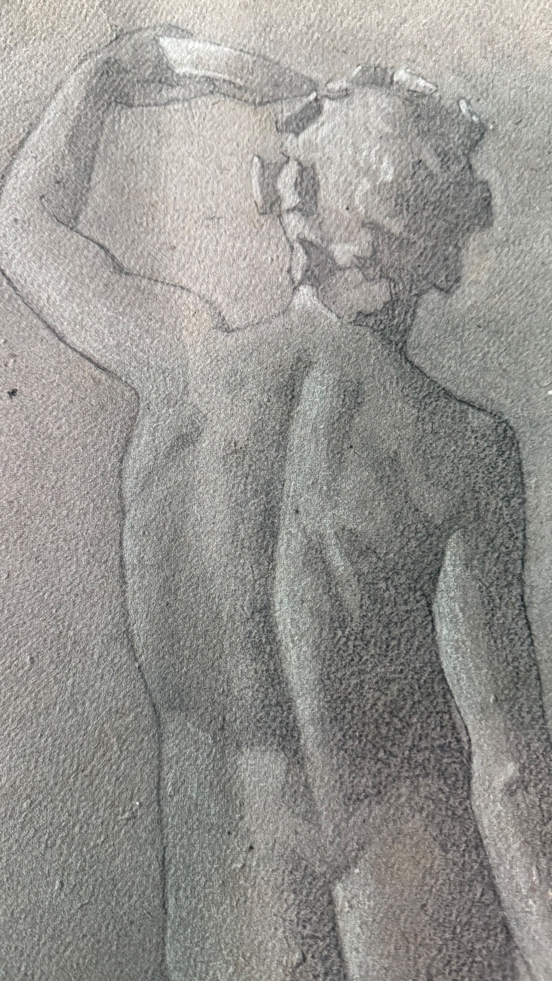 Pencil and white lead drawing on paper depicting a neoclassical figure. Arturo Pietra. Bologna.