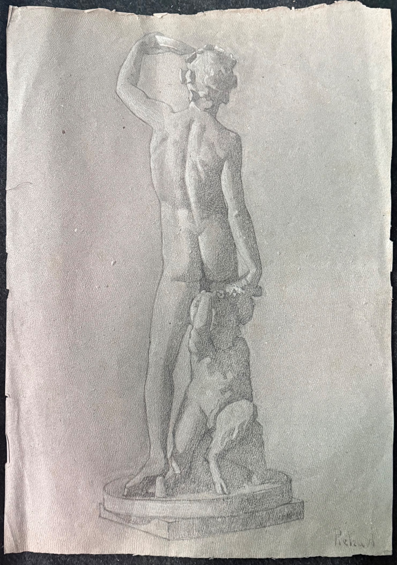 Pencil and white lead drawing on paper depicting a neoclassical figure. Arturo Pietra. Bologna.