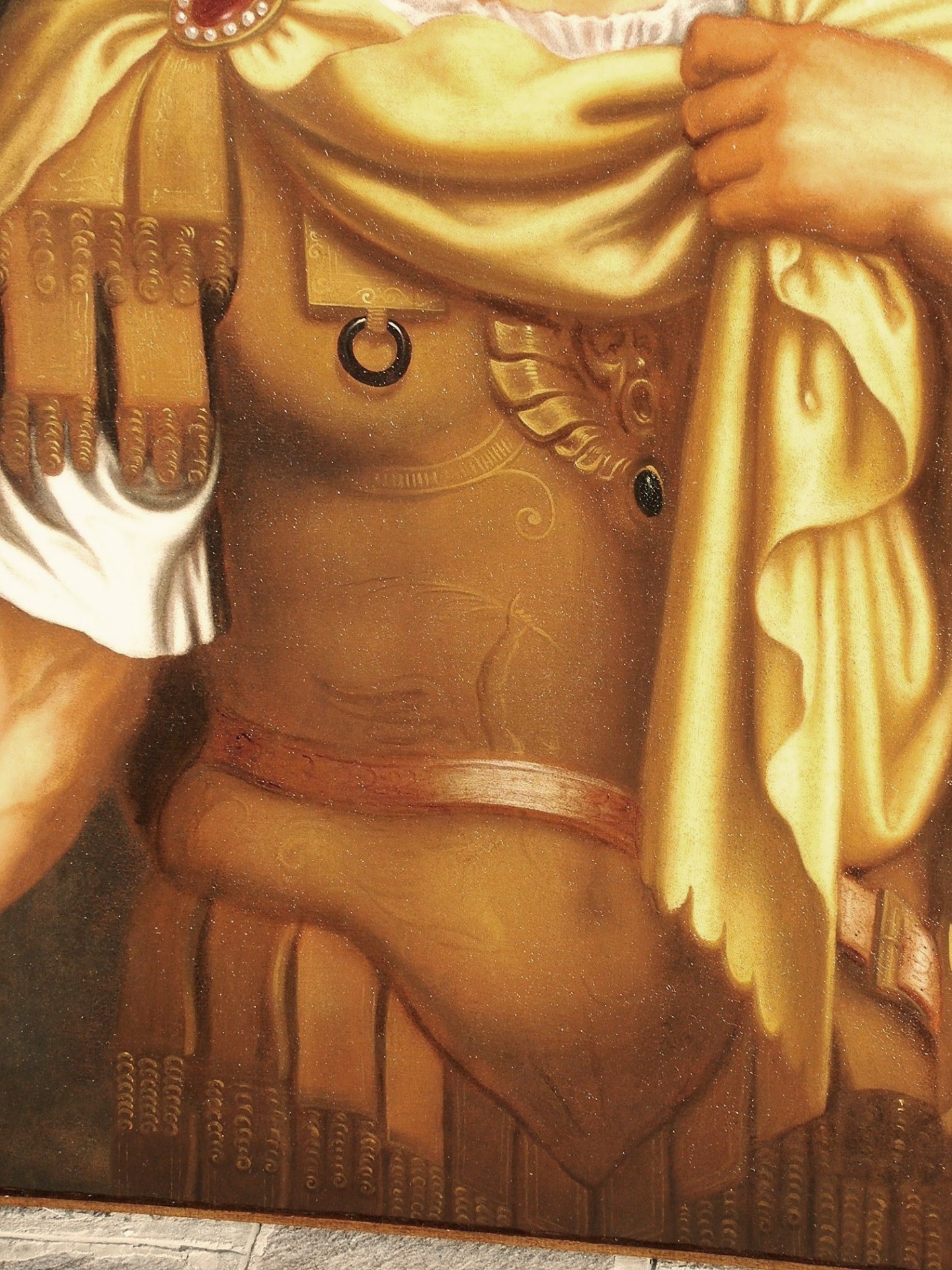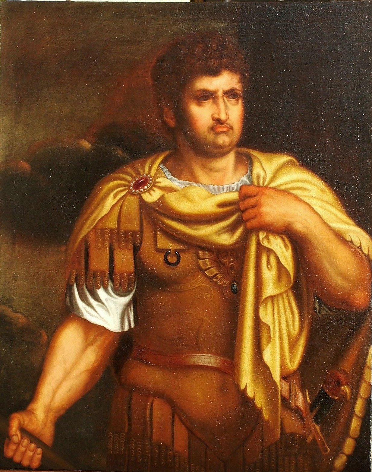 The painting illustrated here must have been part of one of the numerous series of the 11 Emperors, all of the same size, that the workshop of Bernardino Campi did not stop replicating in the following decades (*); the intervention of the master is recognizable in the parts that express the linear decorativism and the search for preciousness in the details typical of Bernardino Campi (he came from a family of goldsmiths), capable of giving the image, together with the impact of "power", also an original affectation.