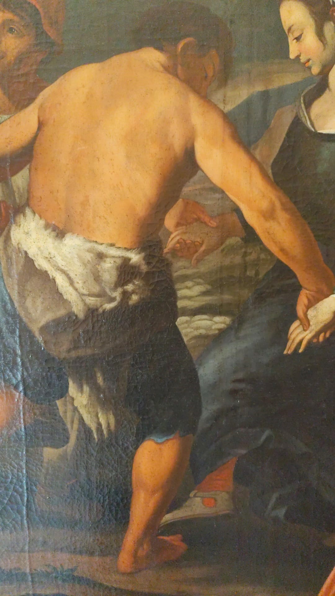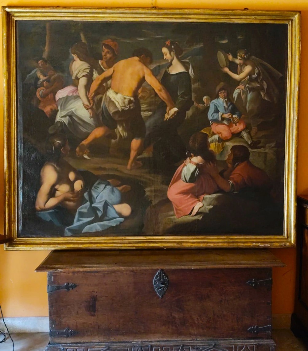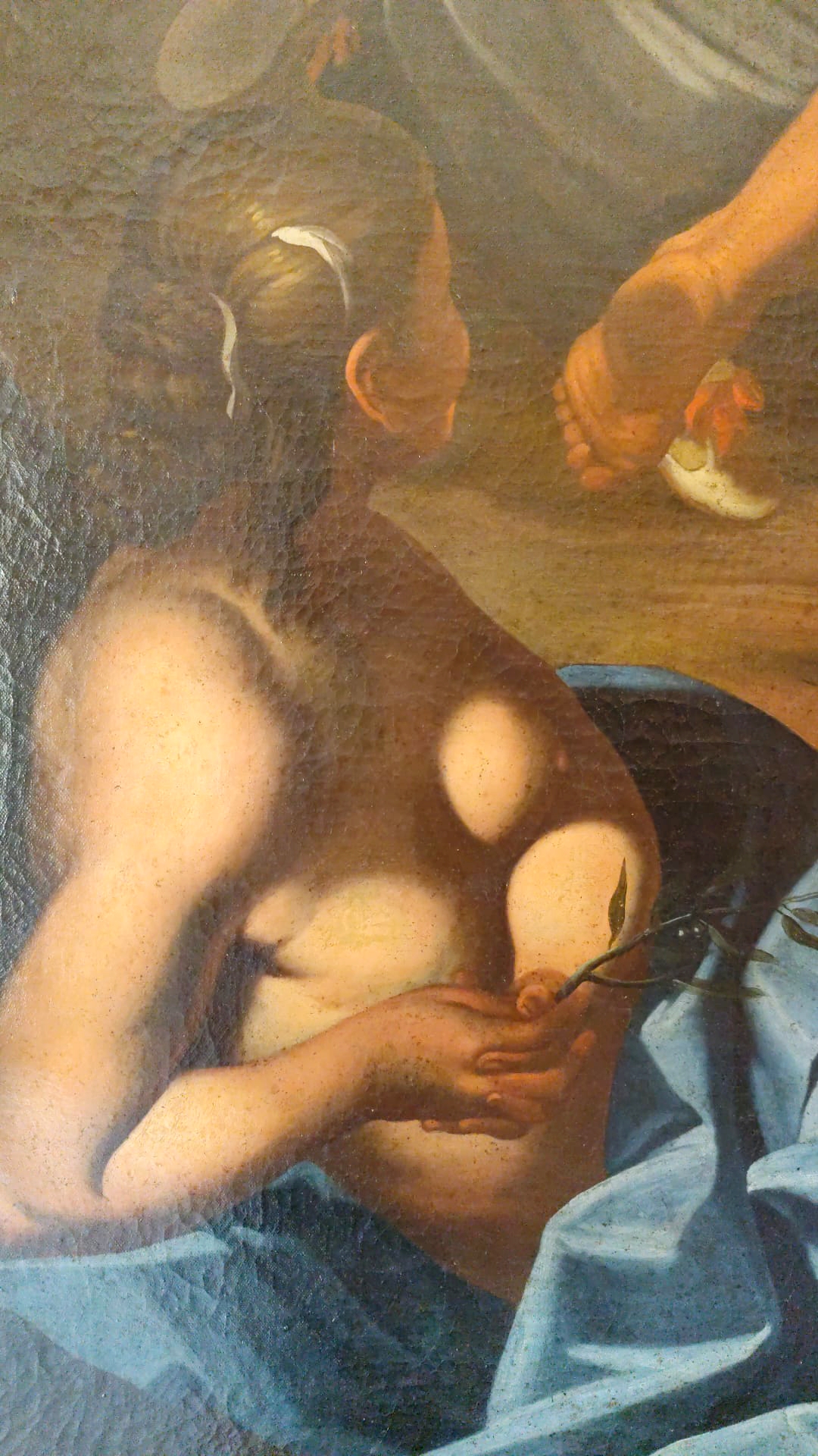 The work is in excellent general condition: a recent professional cleaning has removed old yellowed varnishes; then small cracks have been consolidated, so the surface is stable. The Baroque frame, contemporary and sculpted with acanthus leaves, is also in excellent condition and also enhances the scenic impact. Nevertheless, the canvas retains its original patina, a sign of authenticity that further adds historical charm.