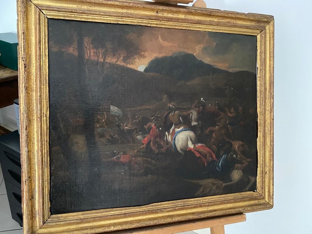 L opera a mio avviso e' da ricercare nell ambito del pittore Matteo Storm ed ha misure di cm.75x65 totali