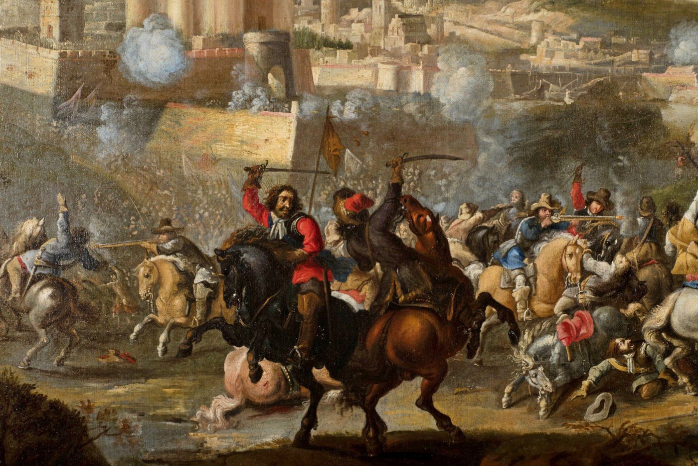 The genre of battle painting was extremely successful in the collections of the Italian and European nobility of the 17th and 18th centuries. The battles of the Italian Renaissance, in which the scene converged on a precise protagonist, evolved towards a type of combat "without a hero." The bloody realism of the details and the dynamic development of the narrative confuse the figure of the protagonist, when present, to give importance to the whirlwind of horses and armed combatants, among whom, moreover, a winner does not emerge.
