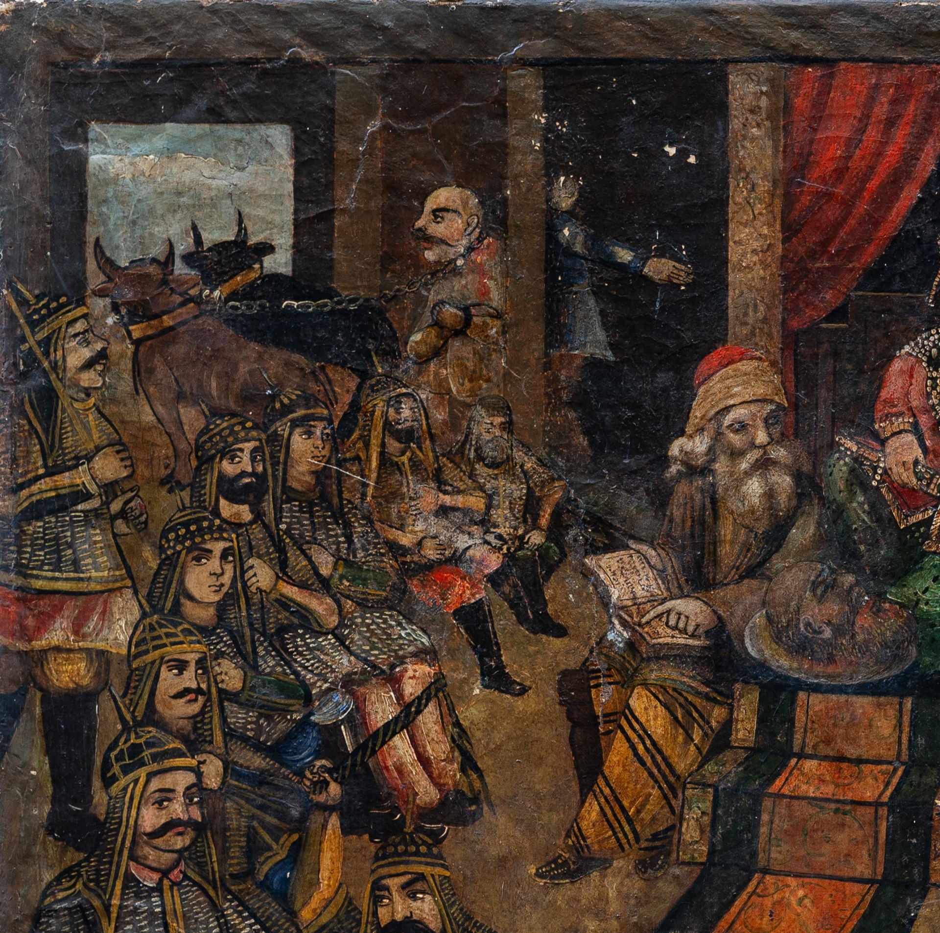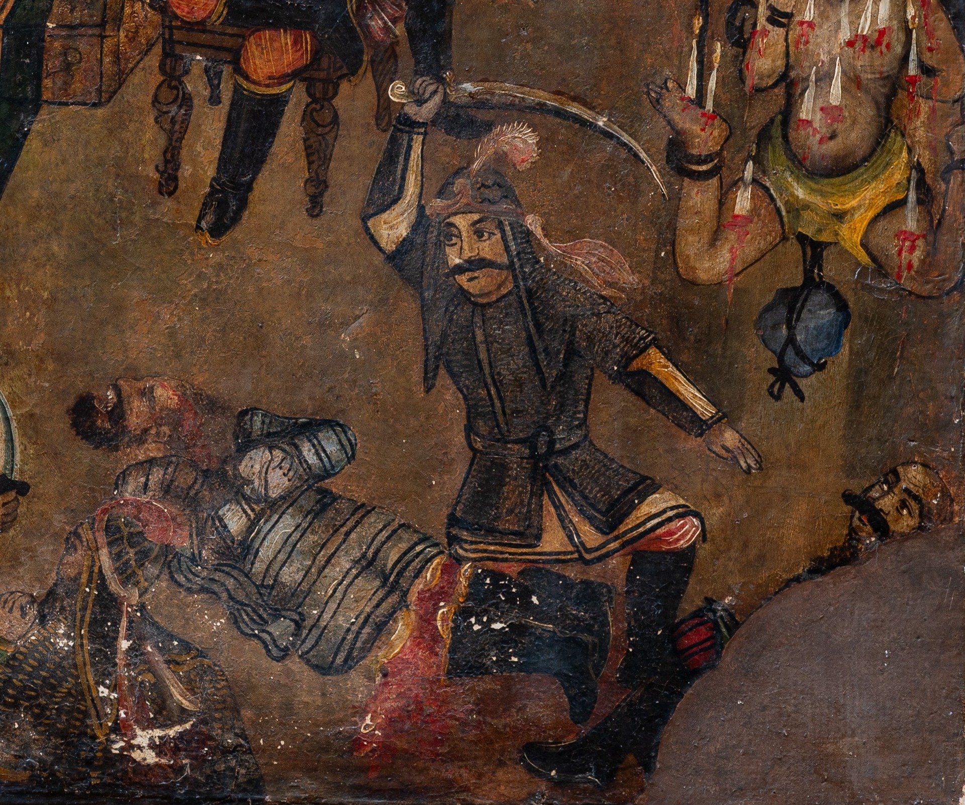 Rare and singular oriental painting depicting torture inflicted on the defeated - Probable 17th century - oil on canvas