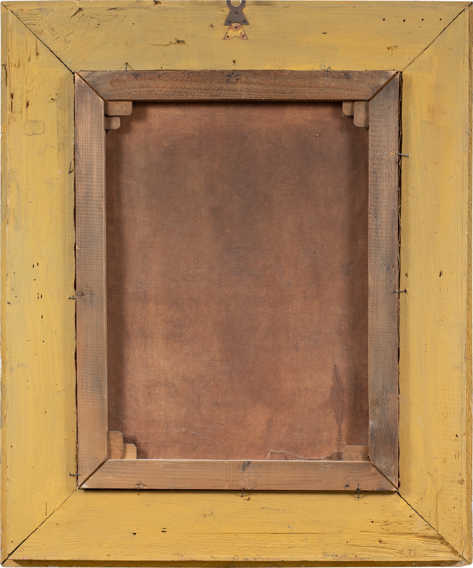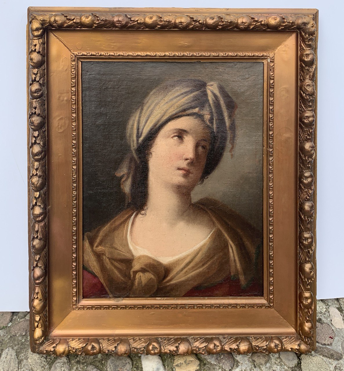 Antique oil painting on canvas, in carved and gilded wooden frame.