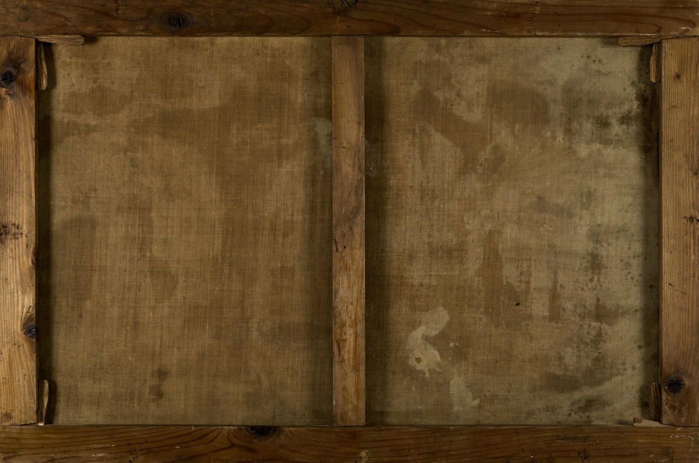 As for the composition, his passionate investigation of the Italianate landscape remains almost unchanged over time, where the traces of time passing inexorably - the ancient architectures in ruins and the dilapidated houses - inhabit the scenarios of a silent nature. His works are always animated by small figures, who carry out their daily activities with simplicity: they bring the flocks to water or graze on the banks of the river. The same popular everyday life of his genre subjects also characterizes the paintings with a sacred theme, such as the one under examination, always dominated by an order that infuses a sovereign peace to the environment.