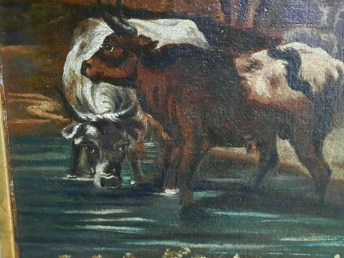 Le dimensioni totali del quadro sono 109 x 84,5 cm la tela 98,5 × 73,5 cm come si può vedere dalle foto il quadro è stato rintelato,si notano piccoli segni del tempo sulla cornice, ma il tutto in perfetto stato da appendere.