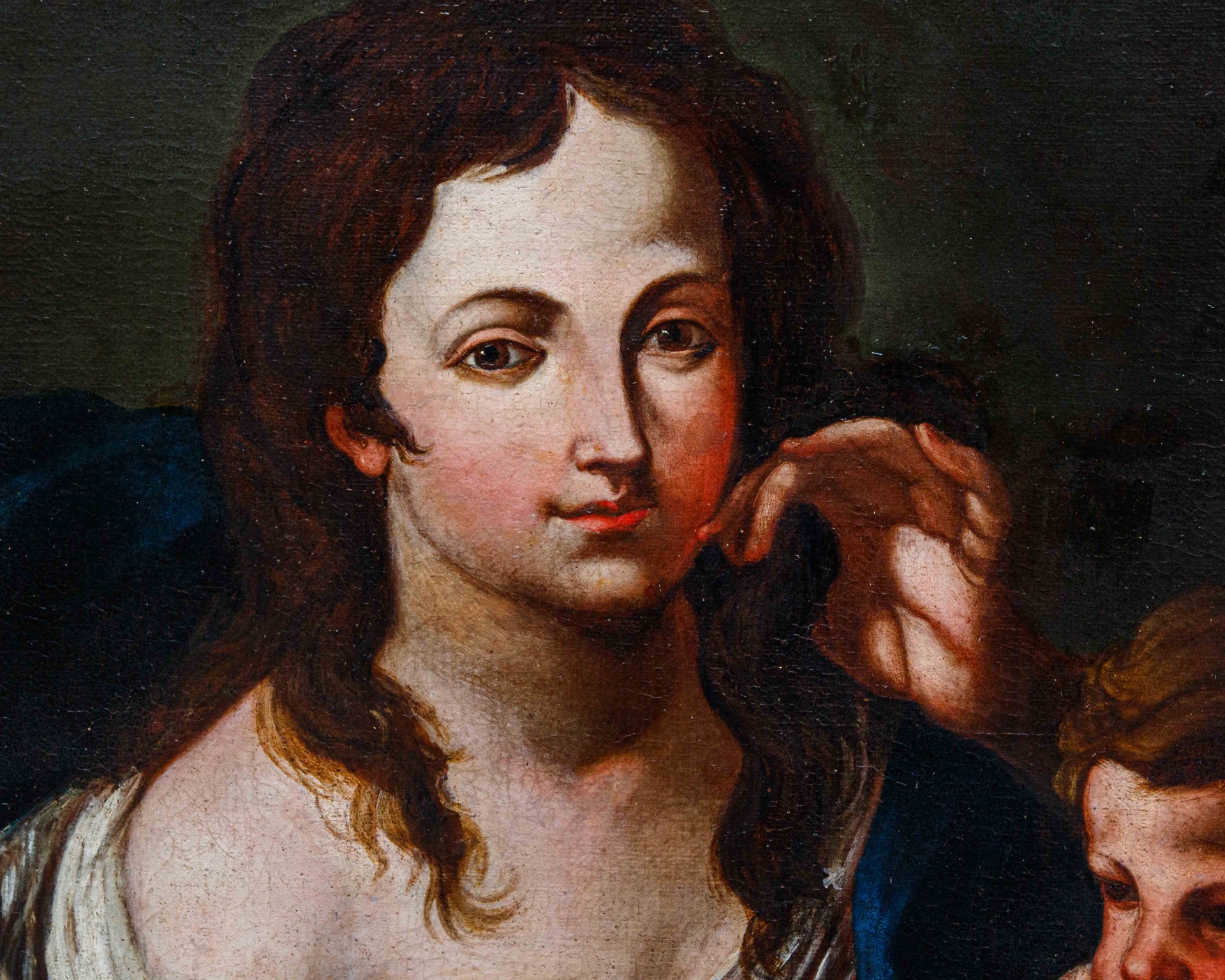 The author of this work is an artist belonging to the Emilian school of painting of the 17th century. Based on compositional and formal evidence, it is possible to assert that the painter was influenced by Carlo Cignani (Bologna 1628 - Forlì 1719), a famous student of Francesco Albani and one of the most accredited masters of the Emilian 17th century, very close to the present painting with his Venus and Cupid now kept at the Galleria Sabauda in Turin. Propagator of a language faithful to the canons of Bolognese classicism of the Carracci, Cignani acquired and sustained increasingly baroque forms, reaching the appointment of prince of the Academy of San Luca in 1710. Active in Bologna, then in Parma, he spent the last period of his career in Forlì, expanding the circle of his students, who in turn were decisive in the codification of the late seventeenth-century and neo-eighteenth-century Emilian taste.