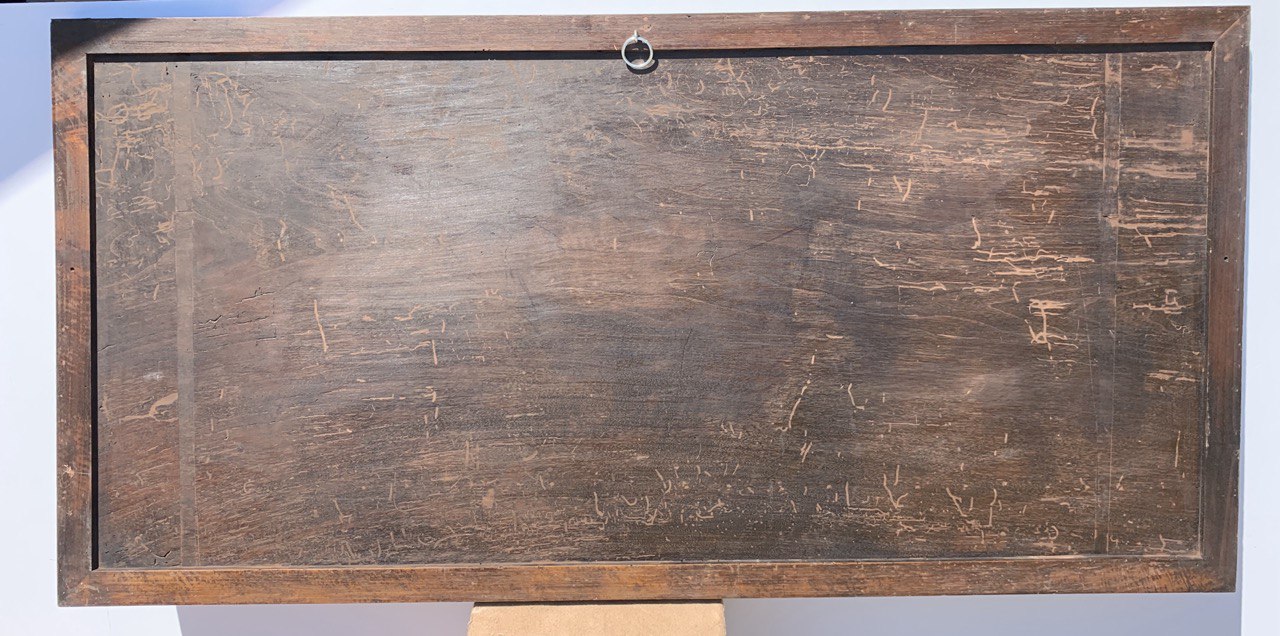 Antique oil painting on panel, in integrated wooden frame.