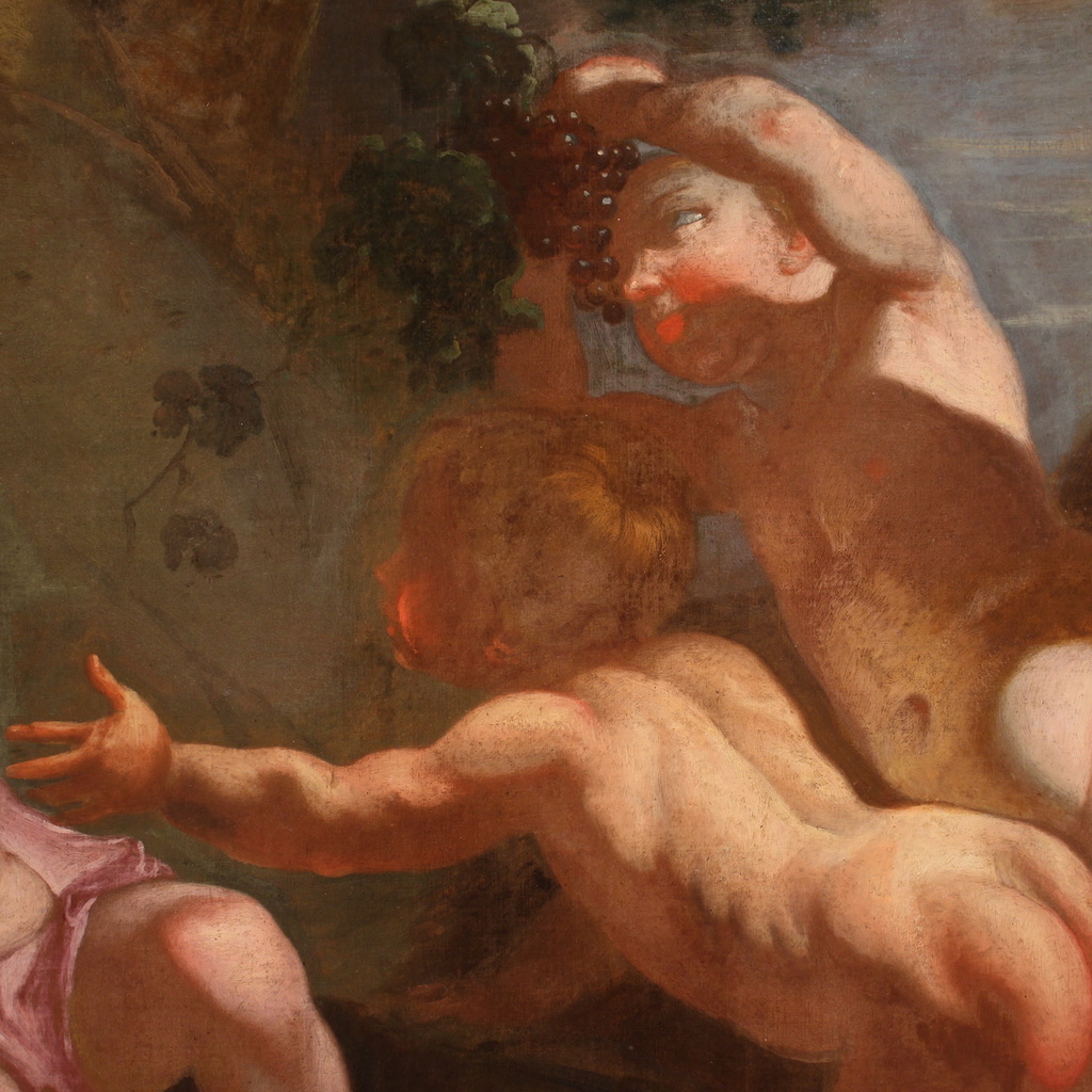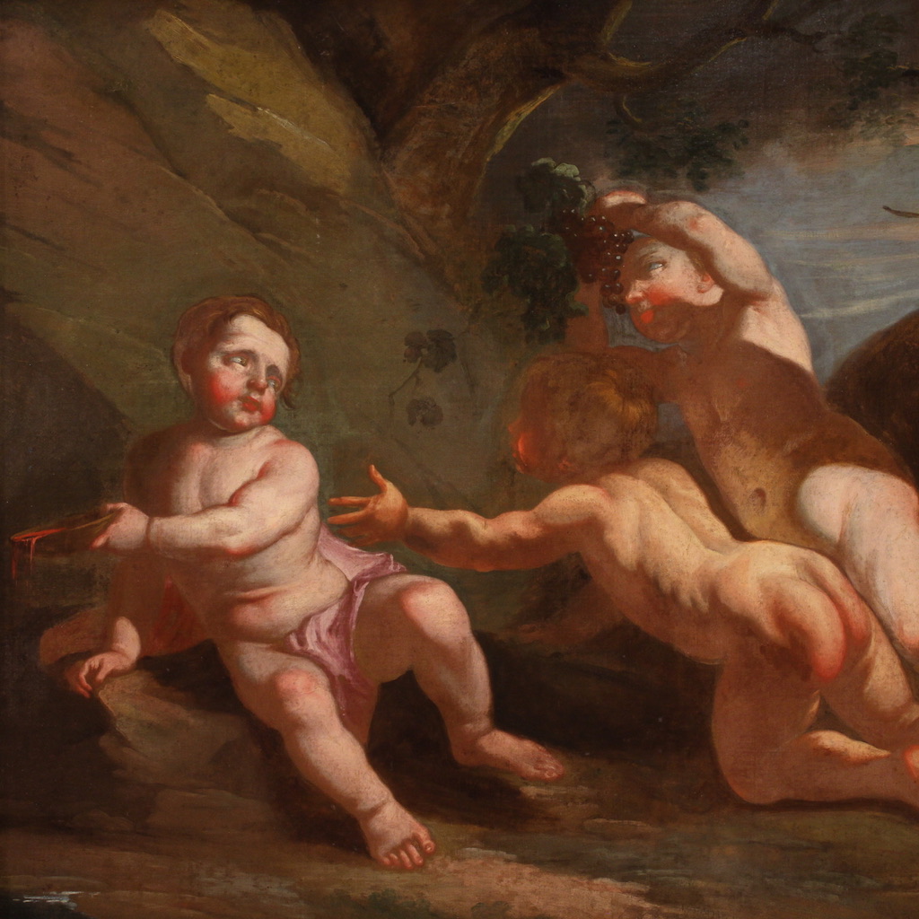 Italian painting from the 17th century, bacchanal of cherubs