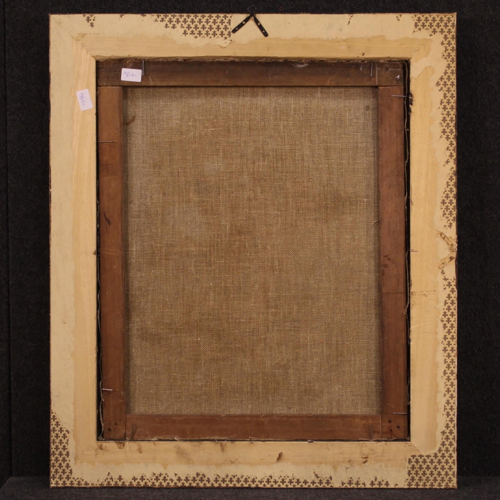 Work that has recently undergone a conservative restoration, relining, replacement of the frame and color recovery in some points (see photo). It has small drops of color on the side border (see photo). Overall painting in good state of conservation with some signs of aging. Sight size H 63.5 x W 52 cm.