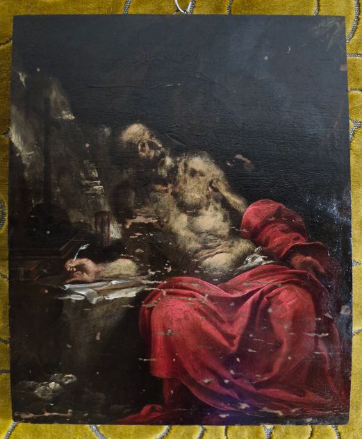 Oil on panel painting, sized 31.5x26 cm
