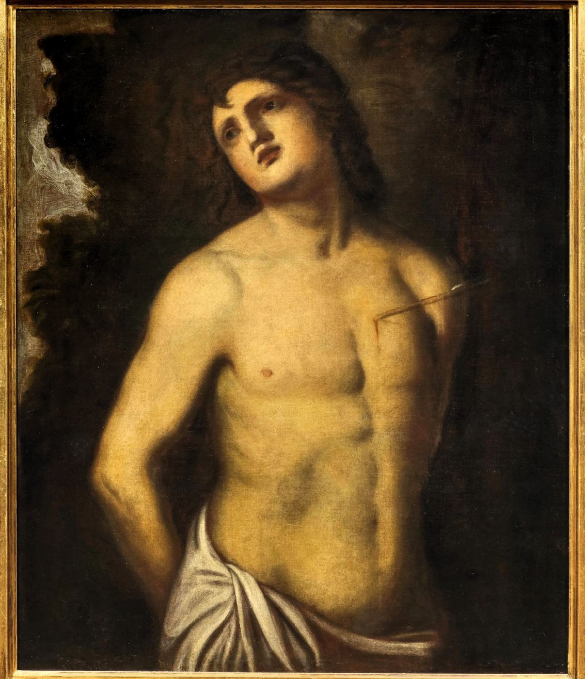 La tela raffigura un' immagine di grande fascino di San Sebastiano, il Santo Martire che ha ispirato i più celebri maestri fin dalla nascita dell'arte cristiana.