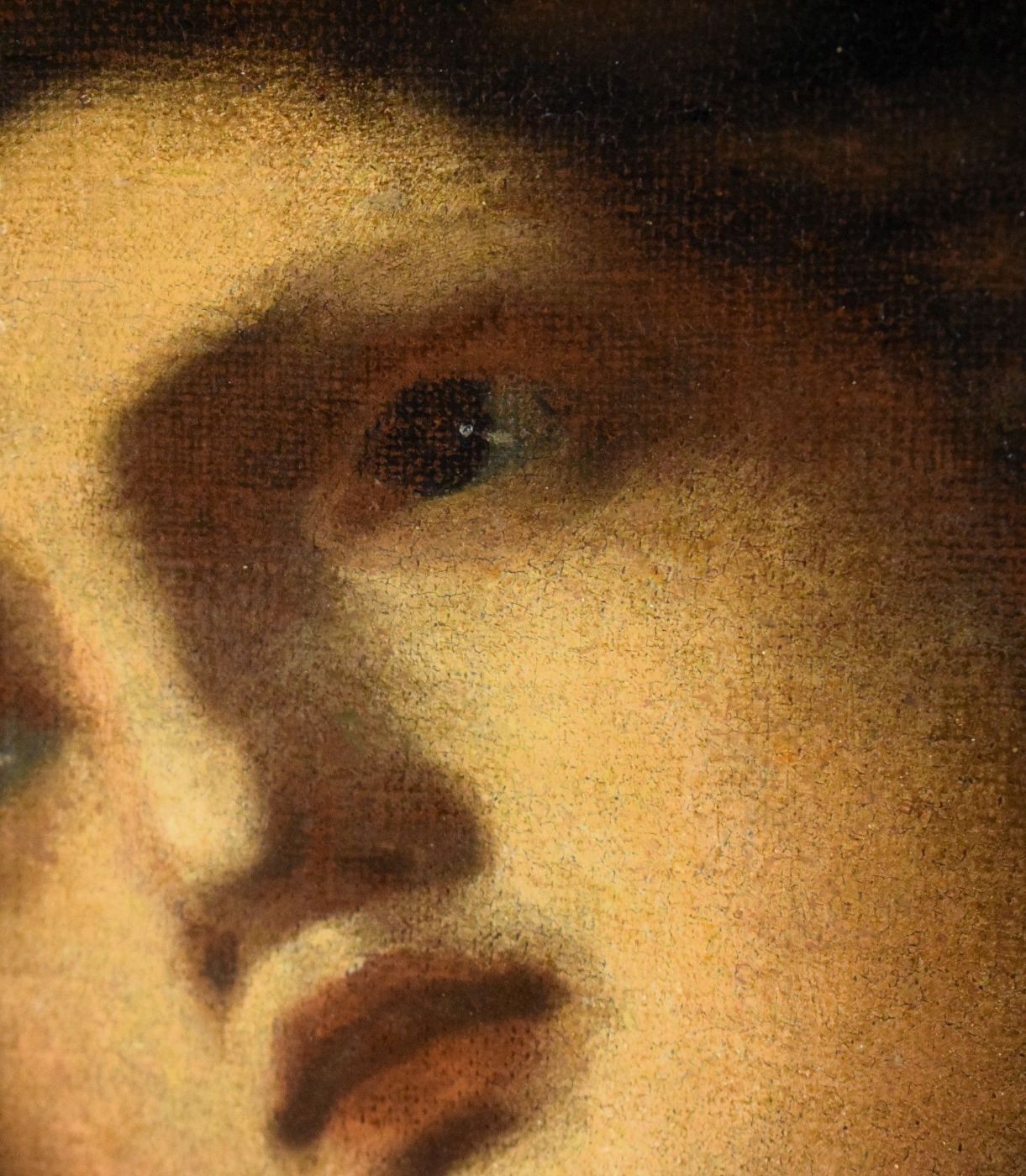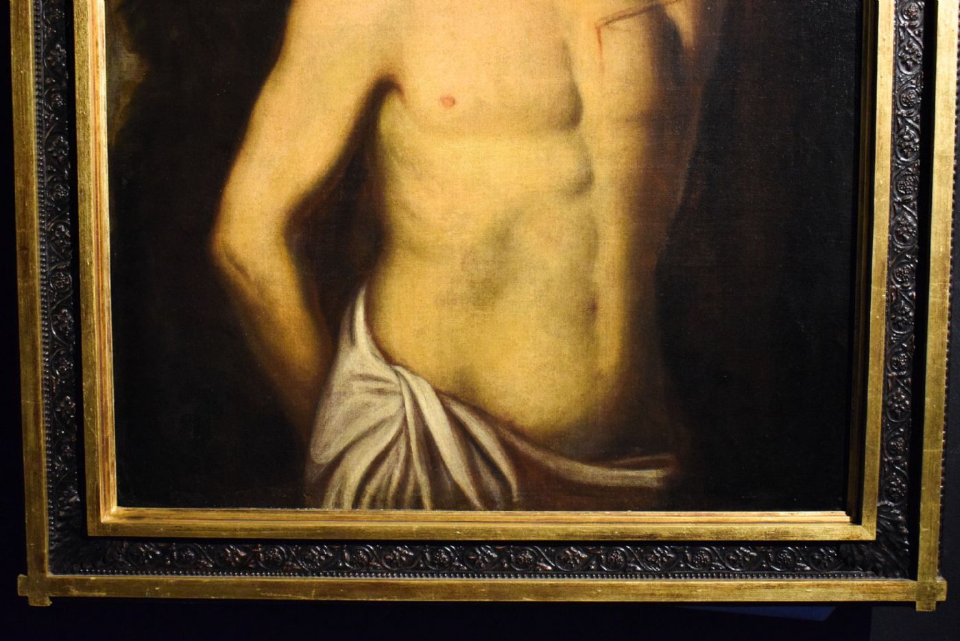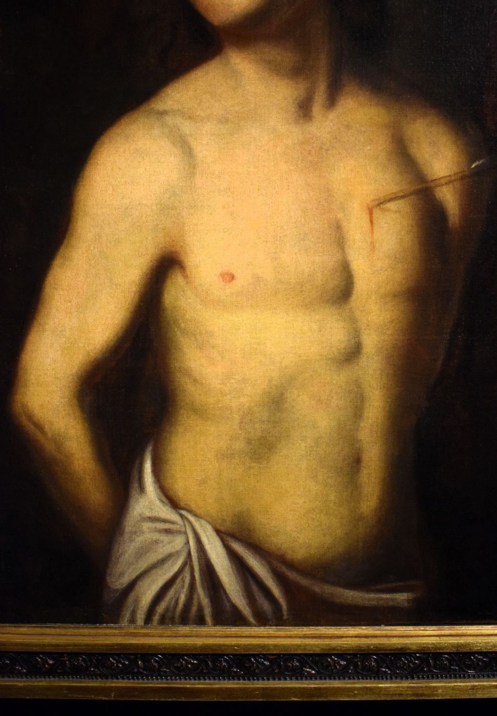 Le ottime condizioni del dipinto permettono una visione ottimale dell'effetto scultoreo che il Maestro imprime alla figura.