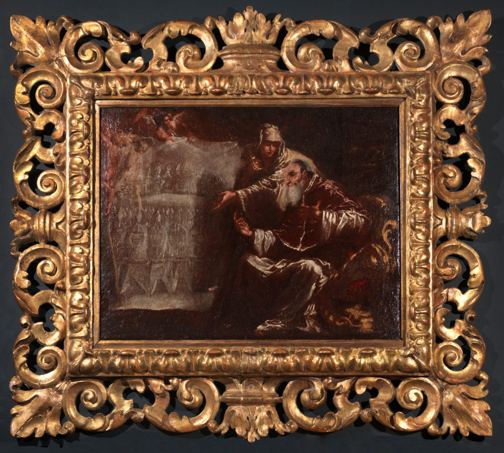 Sebastiano Ricci (Belluno 1659-Venezia 1734), Paolo III ispirato dalla Fede a convocare il Concilio di Trento, olio su tela, bozzetto preparatorio del dipinto di Sebastiano Ricci conservato al Museo Civico di palazzo Farnese, misure 40.5x52.5 cm, con cornice dorata misure 72x84 cm, expertise del professor Dario Succi. http://www.oldpaintingsonline.com