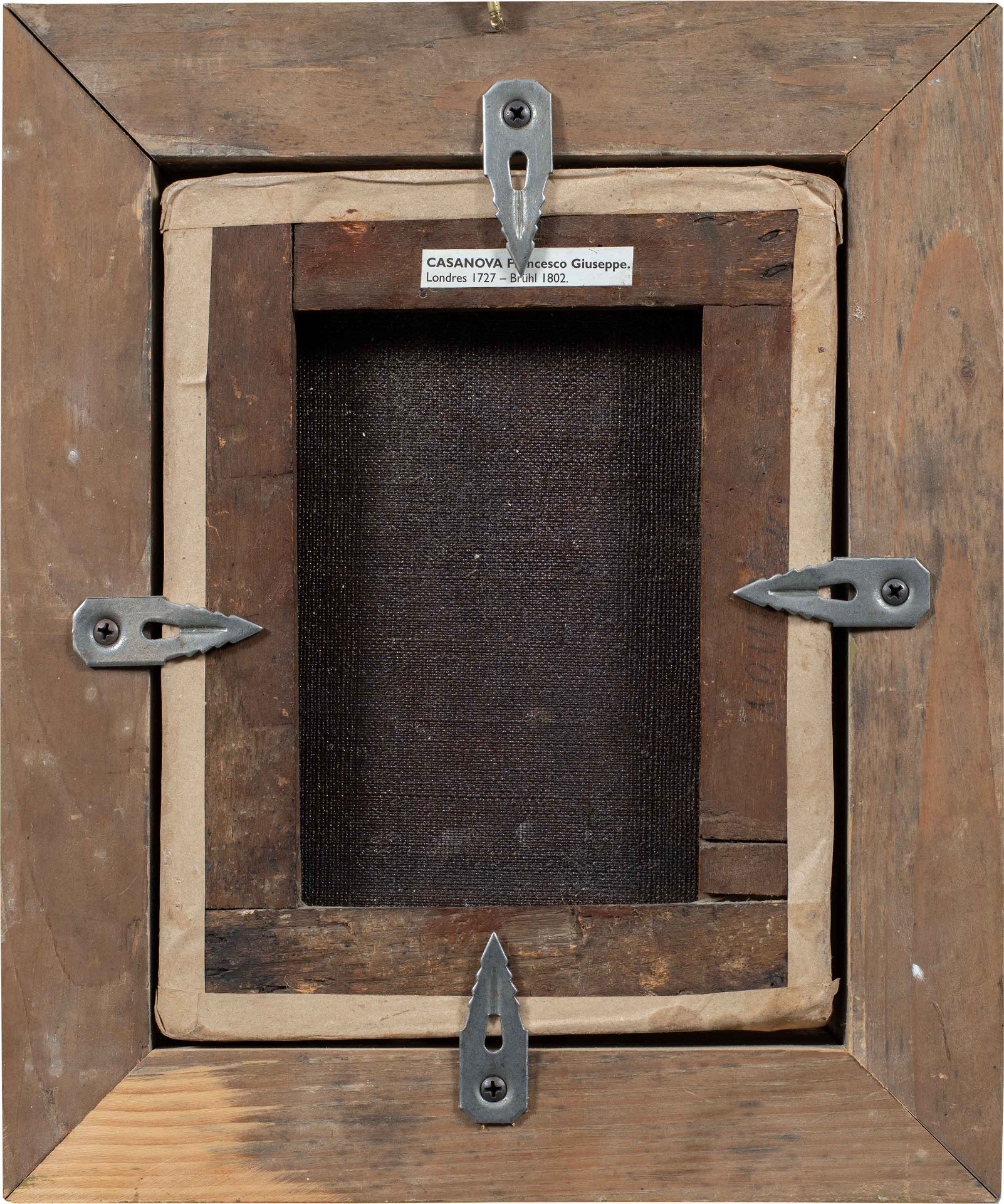 Francesco Casanova (London 1727 – Mödling 1803) - Horse battle scene. 23 x 18 cm without frame, 32 x 27 cm with frame. Oil on canvas, in gilded wooden frame. - Bears label: “CASANOVA Francesco Giuseppe Londres 1727 - Bruhl 1802”. - The painting is attributed to the hand of Francesco Casanova (London 1727 – Mödling 1803) based on stylistic comparisons. Condition report: Original canvas. Good condition of the pictorial surface, there are signs of aging wear and oxidation of the paint. - All shipments within the EU are free and professionally packaged. - Each item is sold with a certificate of authenticity with legal validity. - Further details on the condition report are available upon request. - Viezzi Arte guarantees quality and professionalism at competitive prices, contact us at info@viezziarte.it or via WhatsApp at +39 3402841279. *Message for non-Italian buyers: Please note that this work has not yet obtained the free export certificate from Italy from the Superintendence of Cultural Heritage. This document certifies that the work is not part of the Italian cultural heritage. Normally the release times for the certificates are 40 days from the appointment date: The new legislation in force since 2021 provides for shorter times at the discretion of the committee of experts for amounts declared less than €13,500. All costs of this operation are included.