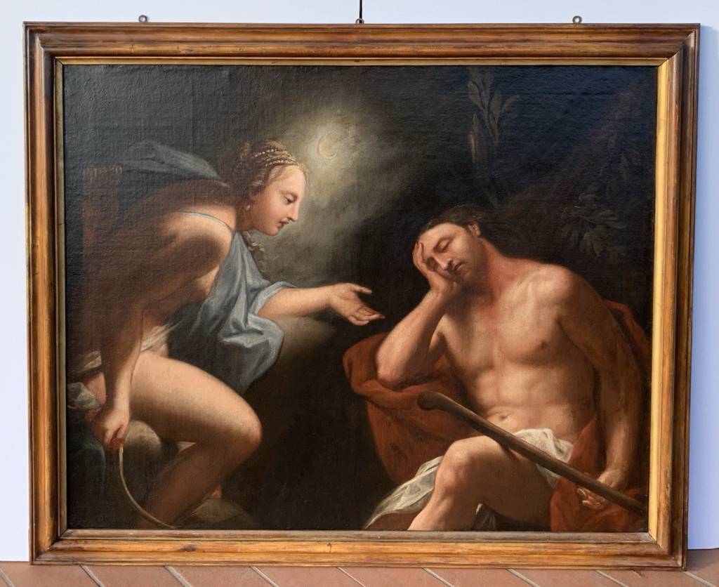 Antonio Bellucci (Venice 1654 - Soligo 1726) - Diana and Endymion. 122 x 152 cm without frame, 142 x 172 cm with frame. Oil on canvas, in carved and lacquered wooden frame. - Attached is a critical note by Prof. Dario Succi. Condition report: Lined canvas. Good condition of the painted surface, there are traces of old restorations and wear (seam of the canvas). - All shipments within the EU are free and professionally packed. - Each item is sold with a certificate of authenticity with legal validity. - Further details on the condition report are available upon request. - Viezzi Arte guarantees quality and professionalism at competitive prices, contact us at info@viezziarte.it or via WhatsApp at +39 3402841279. *Message to non-Italian buyers: Please note that this work has not yet obtained the certificate of free export from Italy from the Superintendency of Cultural Heritage. This document certifies that the work is not part of Italian cultural heritage. Normally, the release times for certificates are 40 days from the date of appointment: The new legislation in force since 2021 provides, for amounts declared less than €13,500, shorter times at the discretion of the committee of experts. All costs of this operation are included.