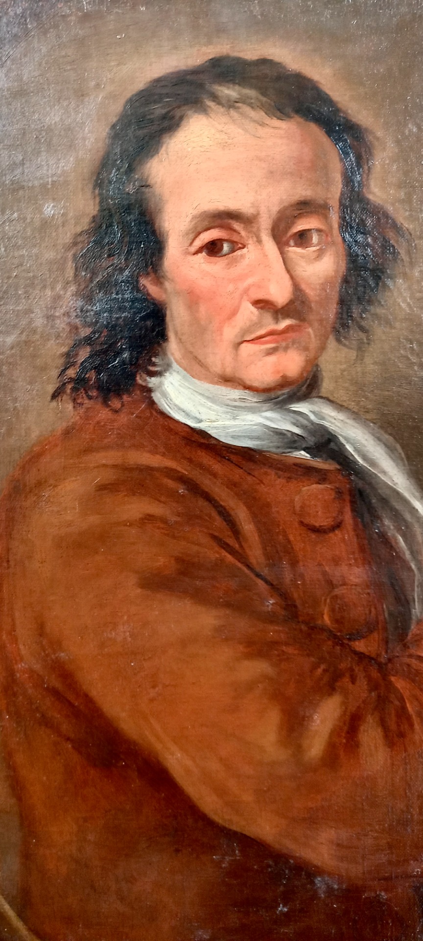 Solo in seconda battuta, a un’osservazione più attenta, ci accorgiamo di una gobba che gli deforma la schiena - forse un "gibbo" da scoliosi - che il pittore rappresenta con garbata aderenza al vero.