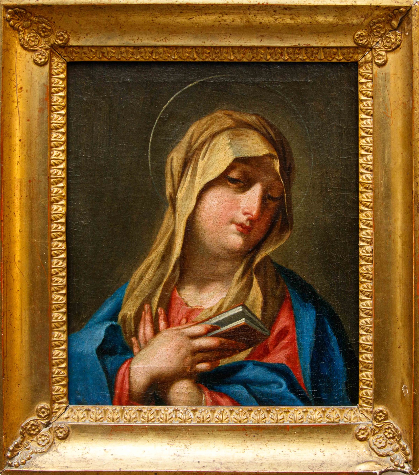 Artista romano del XVIII secolo Vergine orante Olio su tela, cm 31 x 26 Cornice, cm 37 x 33