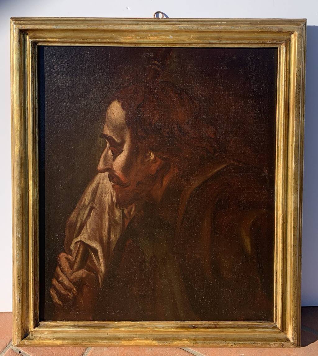 Giambattista Piazzetta (Venice 1683 - Venice 1754), circle of - Saint James the Greater. 62.5 x 52.5 cm without frame, 72.5 x 62.5 cm with frame. Antique oil painting on canvas, in a contemporary 18th-century carved and gilded wooden frame. Condition report: Original canvas. Good state of conservation of the painted surface, with scattered paint losses and traces of transparency due to wear of the canvas (restoration and relining recommended). The painting is presented in its original 18th-century frame. - All shipments within the EU are free and professionally packaged. - Each item is sold with a certificate of authenticity with legal validity. - Further details on the condition report are available upon request. - Viezzi Arte guarantees quality and professionalism at competitive prices, contact us at info@viezziarte.it or via WhatsApp at +39 3402841279. *Message to non-Italian buyers: Please note that this artwork has not yet obtained the free export certificate from Italy from the Superintendency of Cultural Heritage. This document certifies that the work is not part of Italian cultural heritage. Normally, the release times for certificates are 40 days from the appointment date: the new legislation in force since 2021 provides, for amounts declared less than €13,500, shorter times at the discretion of the committee of experts. All costs of this operation are included.