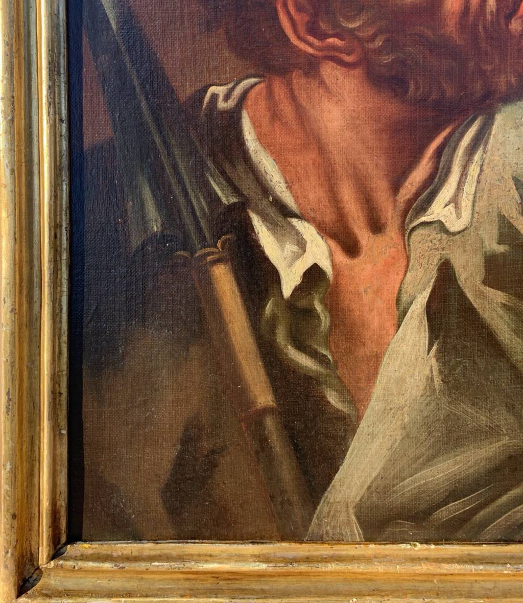Giambattista Piazzetta (Venice 1683 - Venice 1754) circle of - Saint Thomas. 62.5 x 52.5 cm without frame, 72.5 x 62.5 cm with frame. Antique oil painting on canvas, in contemporary carved and gilded wooden frame from the 18th century. Condition report: Lined canvas. Good condition of the painted surface, with scattered paint losses (restoration recommended). The painting is presented in its original 18th-century frame. - All shipments within the EU are free and professionally packaged. - Each item is sold with a certificate of authenticity with legal validity. - Further information on the condition report is available upon request. - Viezzi Arte guarantees quality and professionalism at competitive prices, contact us at info@viezziarte.it or via WhatsApp at +39 3402841279. *Message for non-Italian buyers: Please note that this work has not yet obtained the export certificate from Italy from the Superintendence of Cultural Heritage. This document certifies that the work is not part of the Italian cultural heritage. Normally the release times for the certificates are 40 days from the date of appointment: The new legislation in force since 2021 provides, for amounts declared less than €13,500, shorter times at the discretion of the experts' commission. All costs of this operation are included.