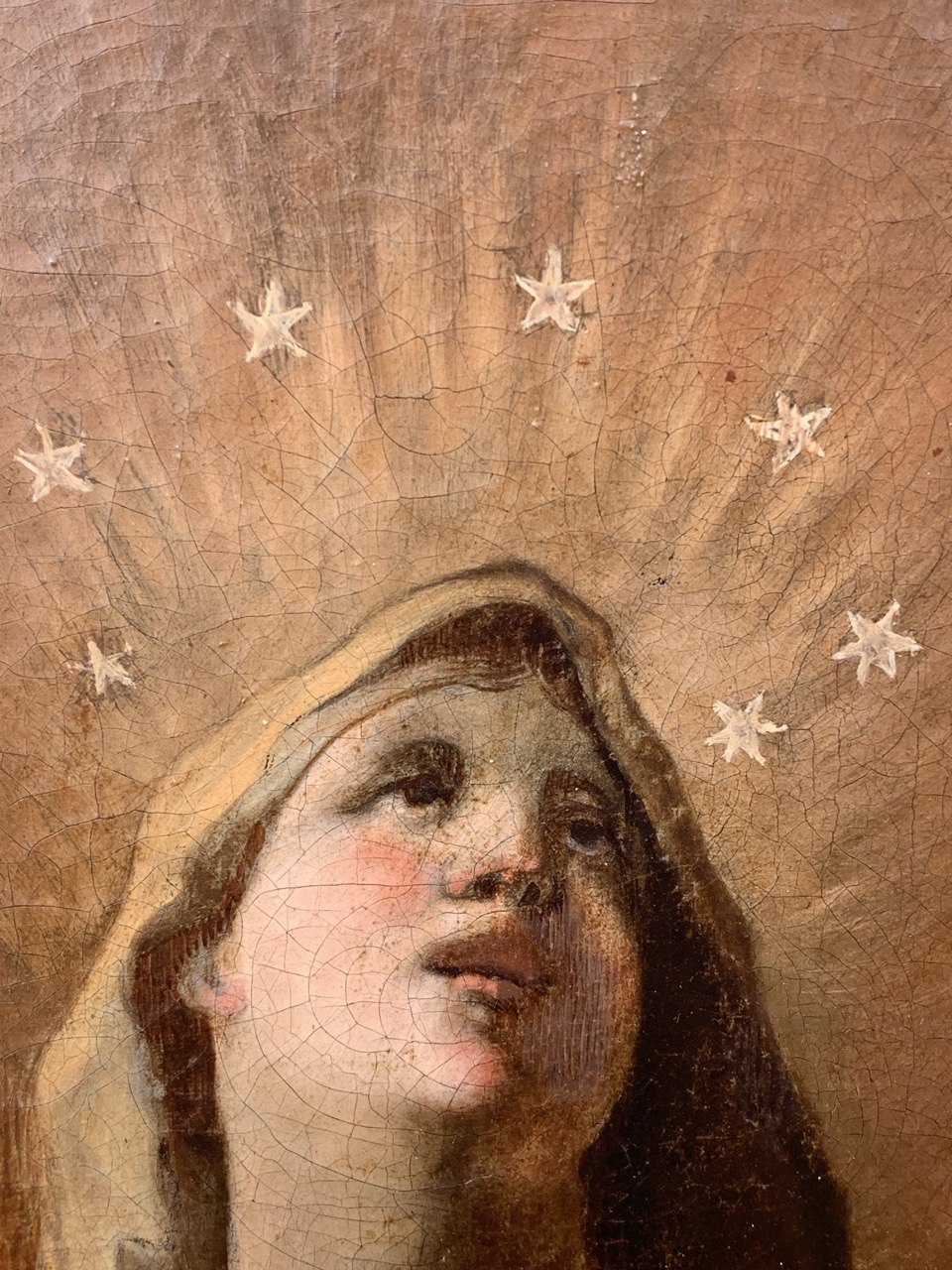 Venetian painter (18th century) - Mary Magdalene. 46 x 37 cm without frame, 80 x 71 cm with frame. Antique oil painting on canvas, in a carved wooden frame. - Bears a label: “Sainte Marie-Madeleine, Atelier de Giovanni Battista Tiepolo, Venice 05.03.1696 - Madrid 27.05.1770, Ecole italien du Venise au XVIII° s (+-1740)". Condition report: Lined canvas. Good condition of the painted surface, widespread oxidation of the varnish (cleaning recommended). - All shipments within the EU are free and professionally packaged. - Each item is sold with a certificate of authenticity with legal validity. - Further details on the condition report are available upon request. - Viezzi Arte guarantees quality and professionalism at competitive prices, contact us at info@viezziarte.it or via WhatsApp at +39 3402841279. *Message to non-Italian buyers: Please note that this work has not yet obtained the certificate of free export from Italy from the Superintendency of Cultural Heritage. This document certifies that the work is not part of the Italian cultural heritage. The release times for the certificates are normally 40 days from the date of appointment: The new legislation in force since 2021 provides, for amounts declared less than € 13,500, shorter times at the discretion of the commission of experts. All costs of this operation are included.