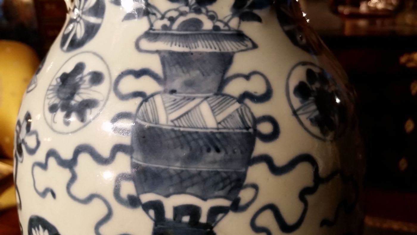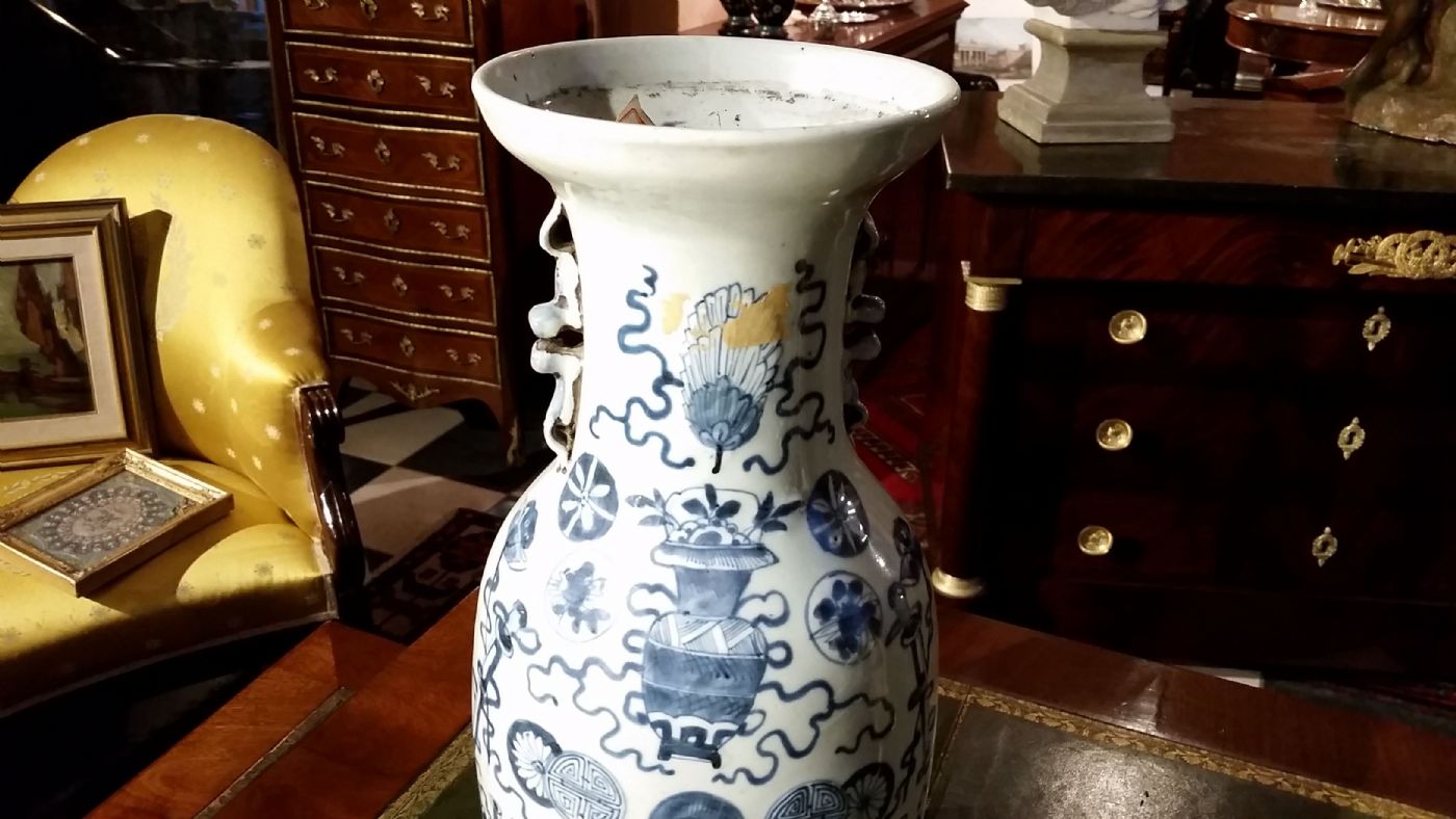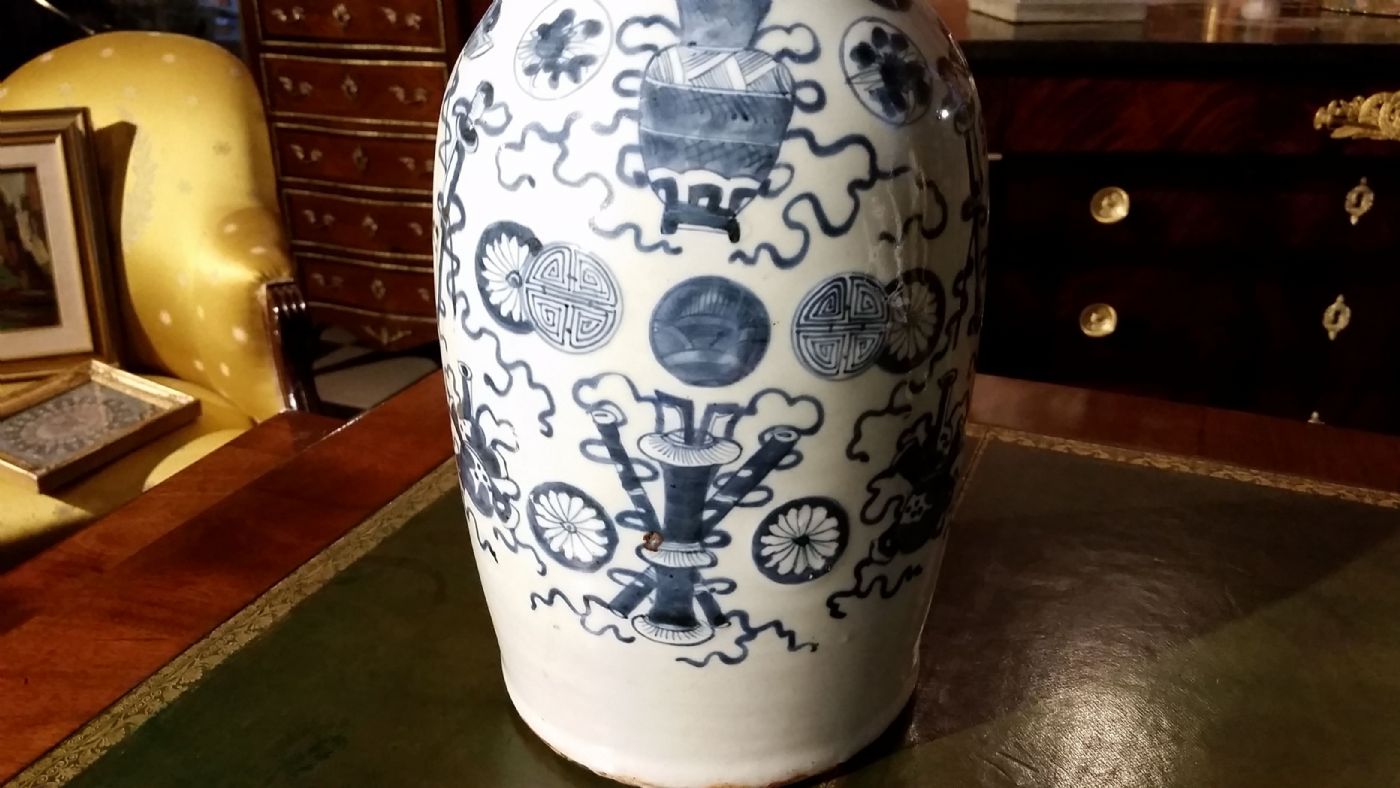 White porcelain vase with cobalt blue decorations.China, late 19th century.