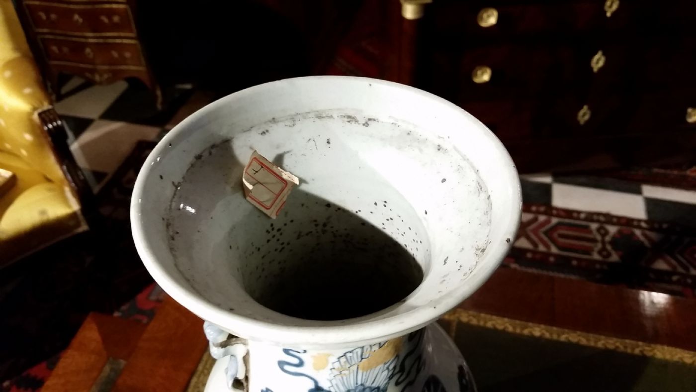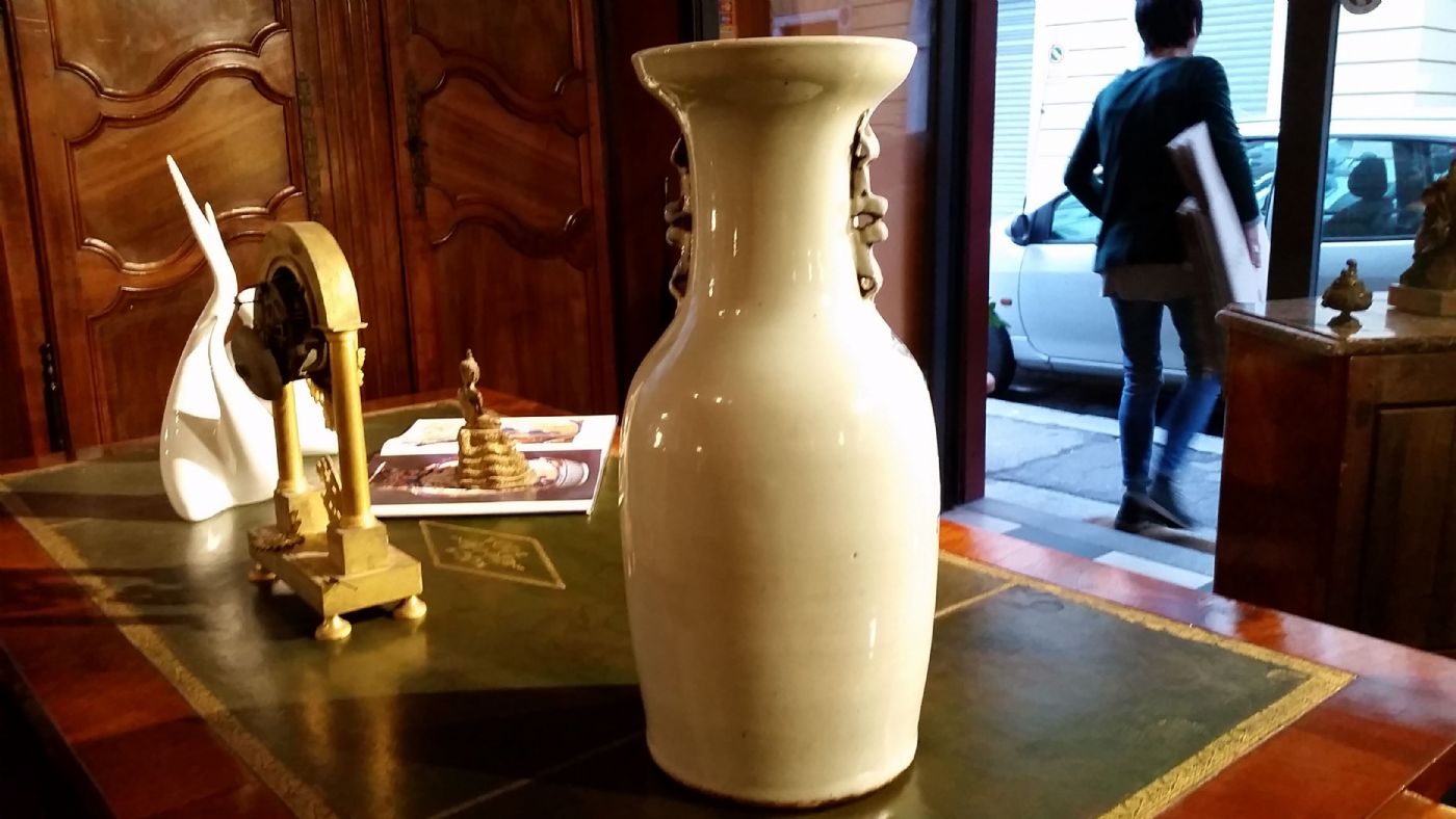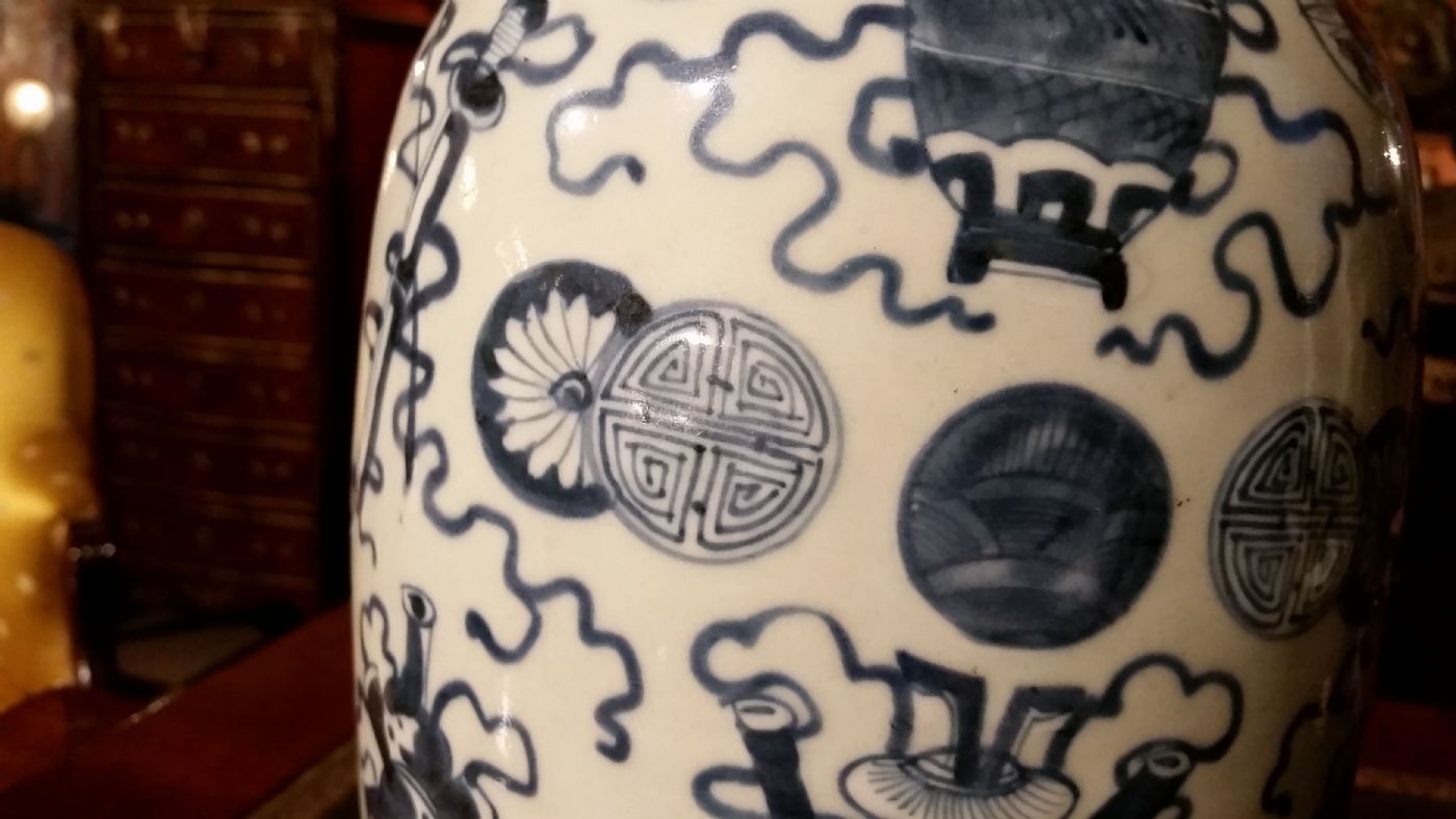 White porcelain vase with cobalt blue decorations.China, late 19th century.