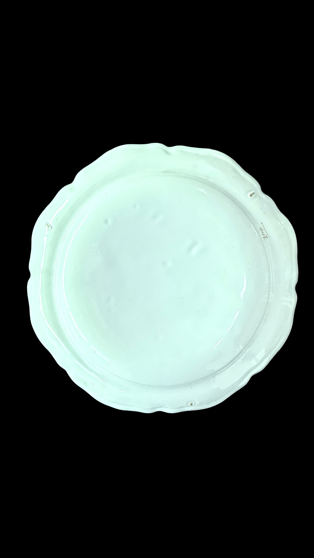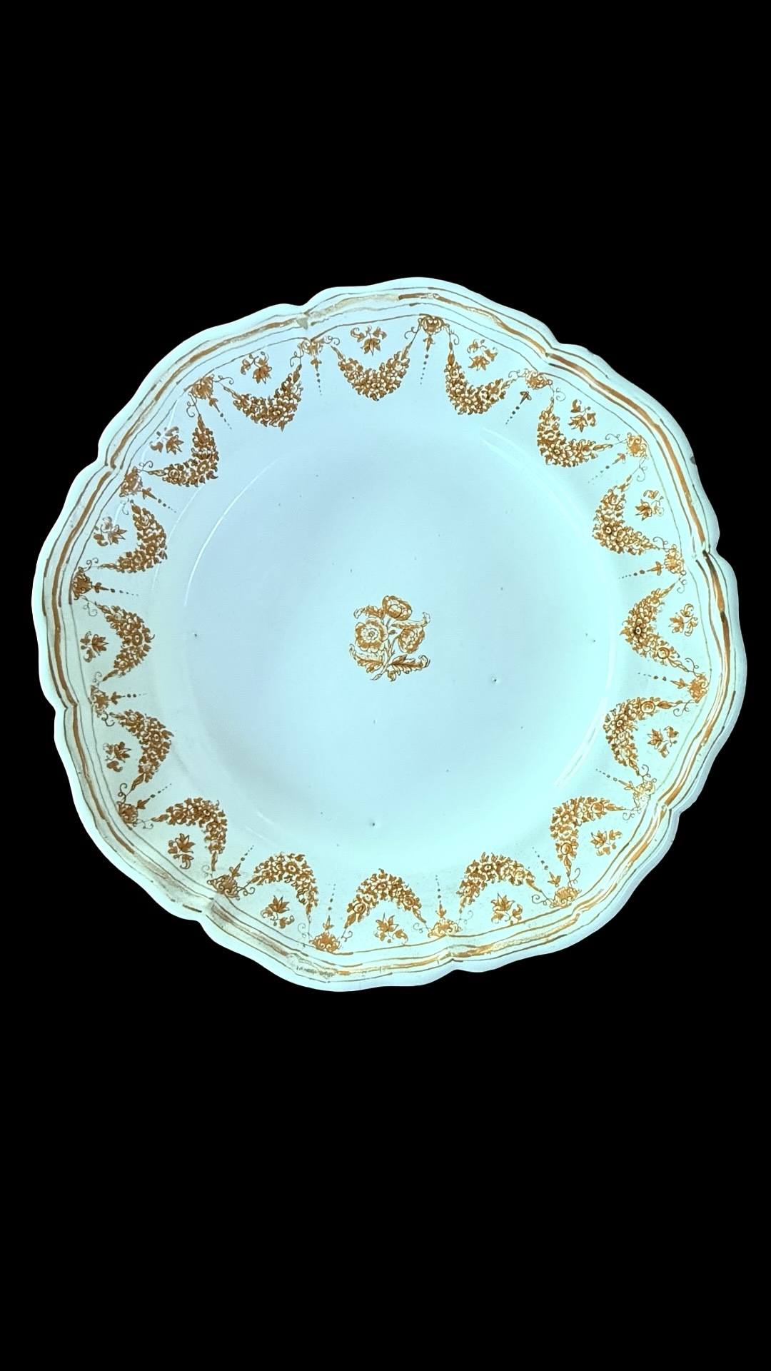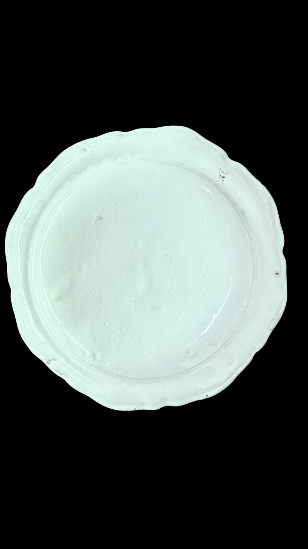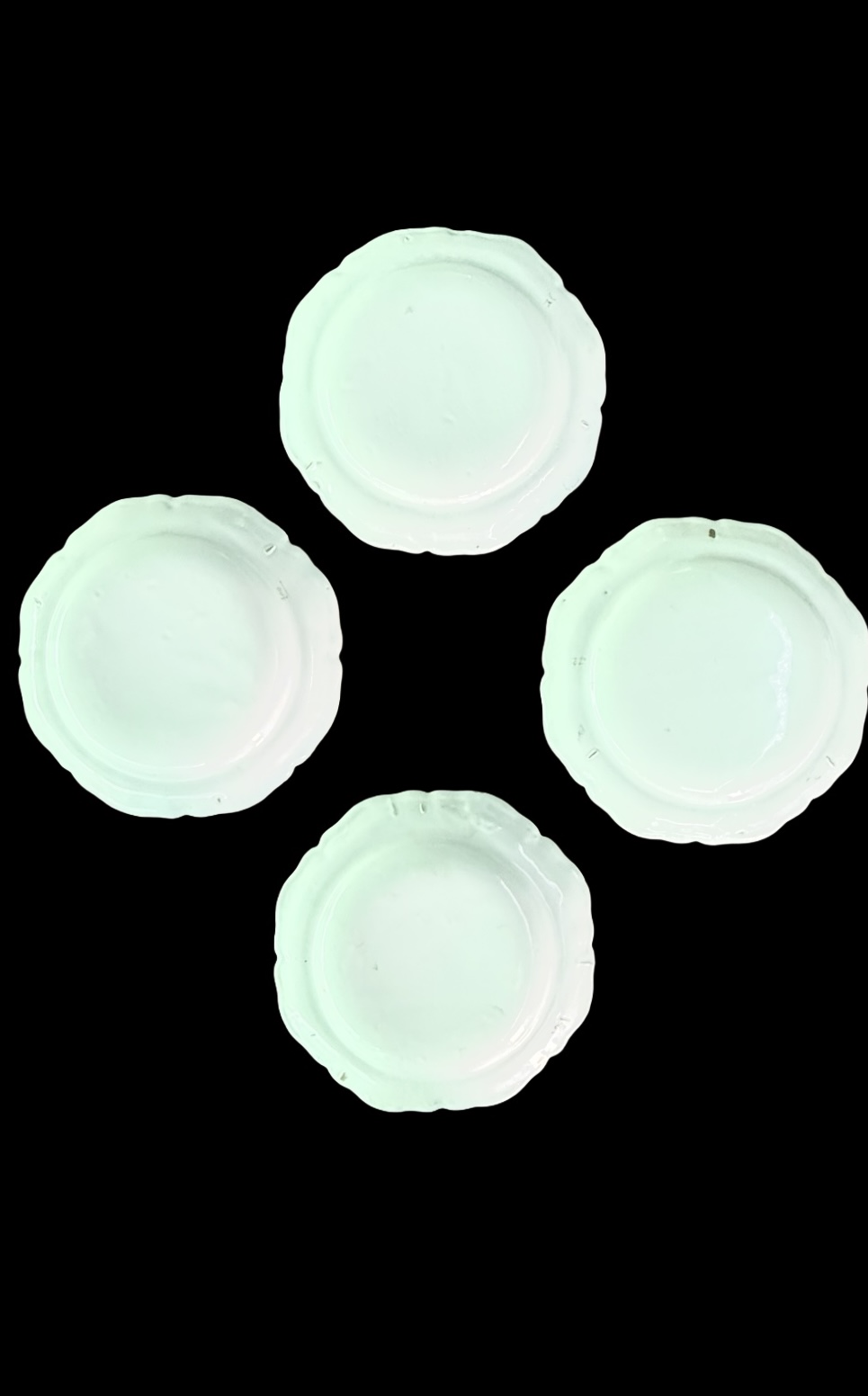 Four majolica plates decorated with festoons and floral motifs. Moustiers, France. Signature Jean Etienne Baron. Olerys and Laugier manufactory.