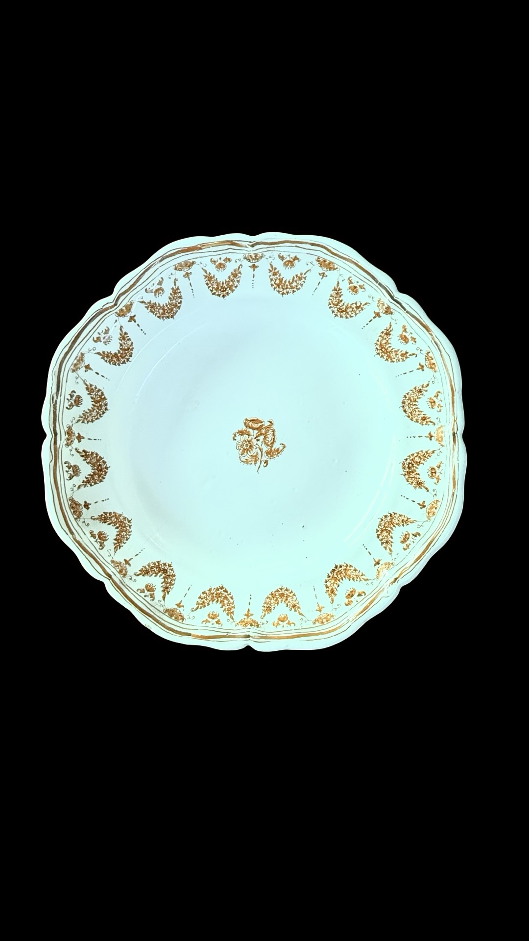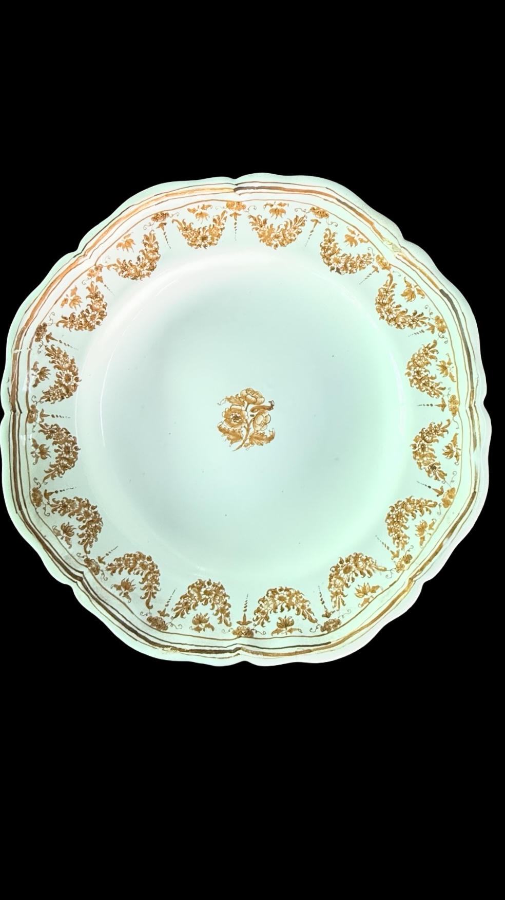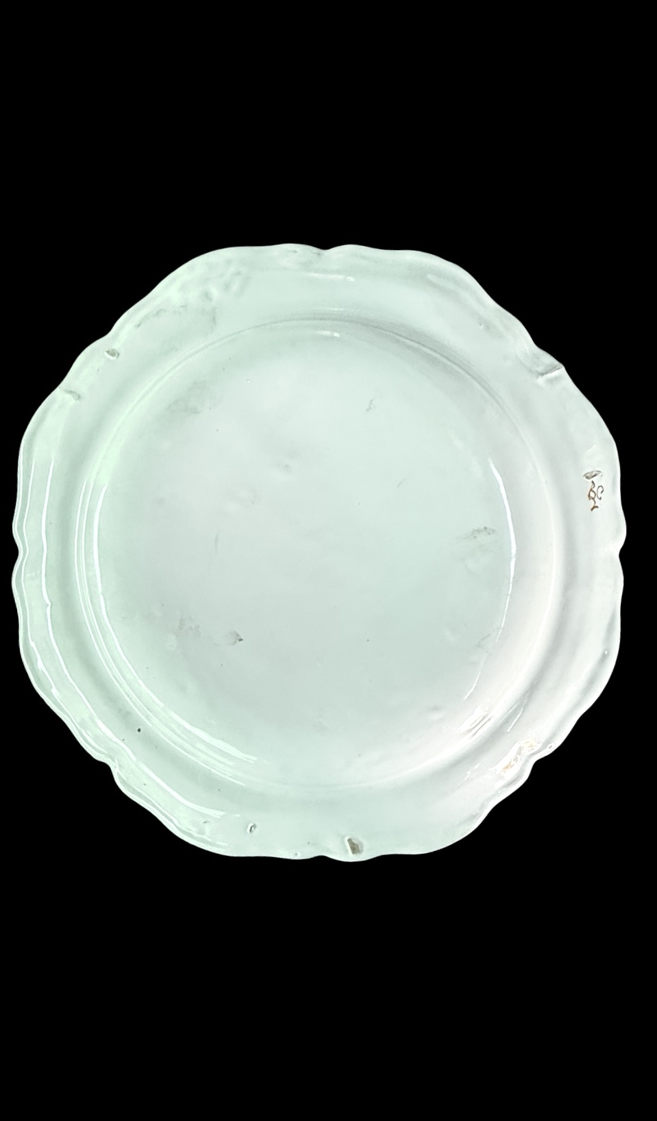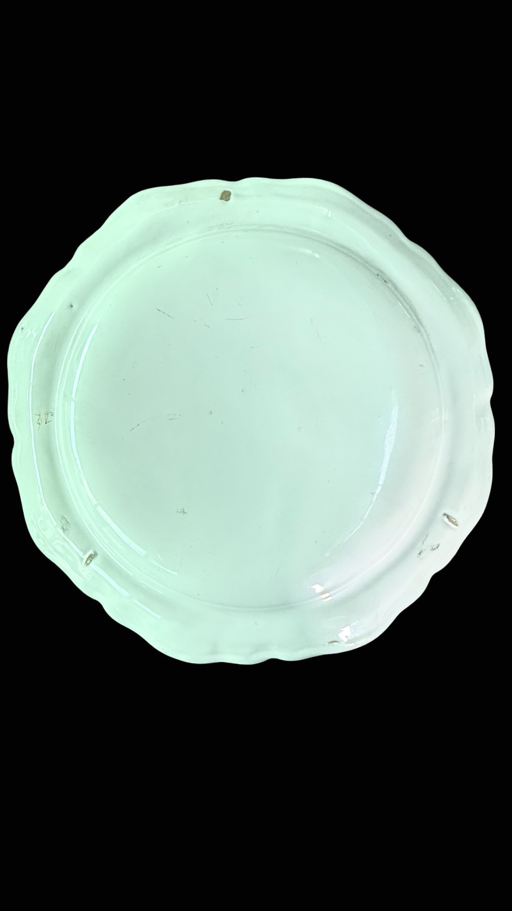 Four majolica plates decorated with festoons and floral motifs. Moustiers, France. Signature Jean Etienne Baron. Olerys and Laugier manufactory.
