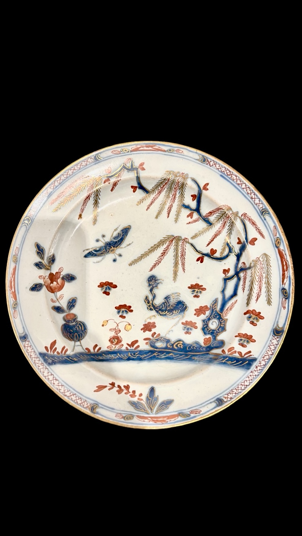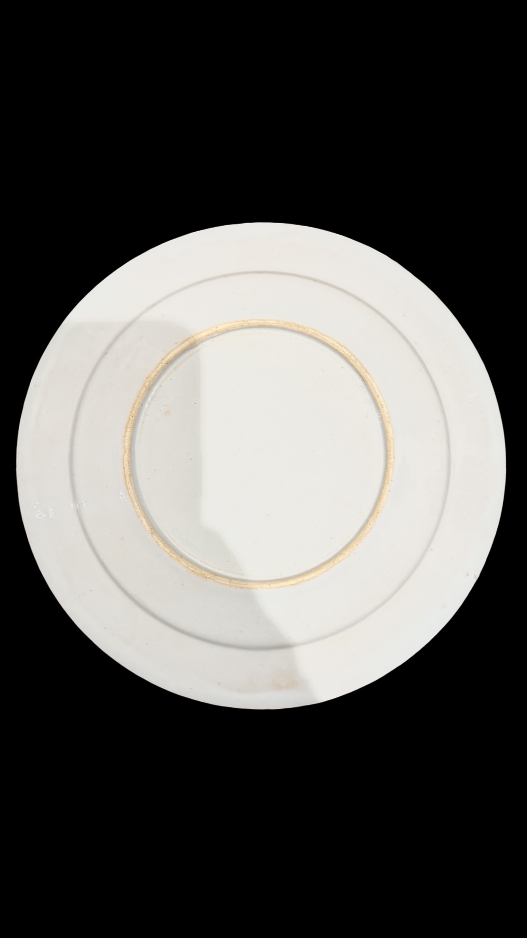 Majolica plate with 'ostrich' decoration and gold highlights. Felice Clerici manufacture. Milan. Cm 23.