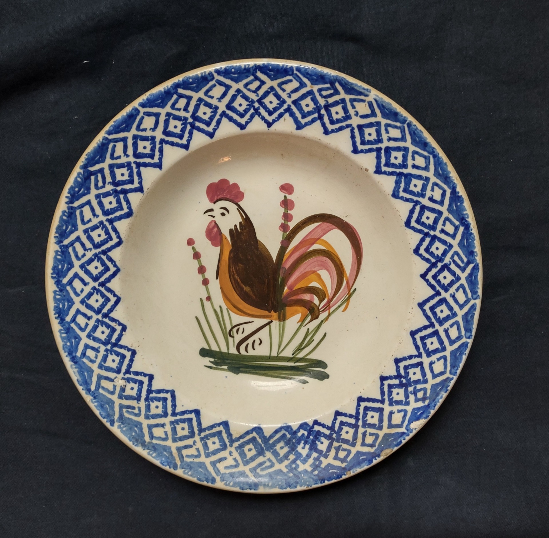 Mondovì ceramic rooster plate.Besio manufacture. Period 1899-1908