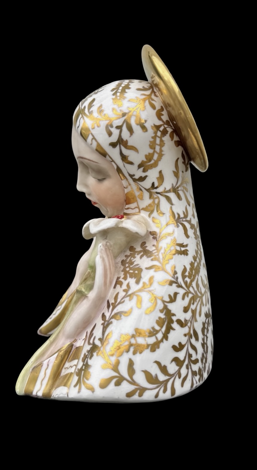 Ceramic bust of Madonna with gold decorations. Cacciapuoti.
