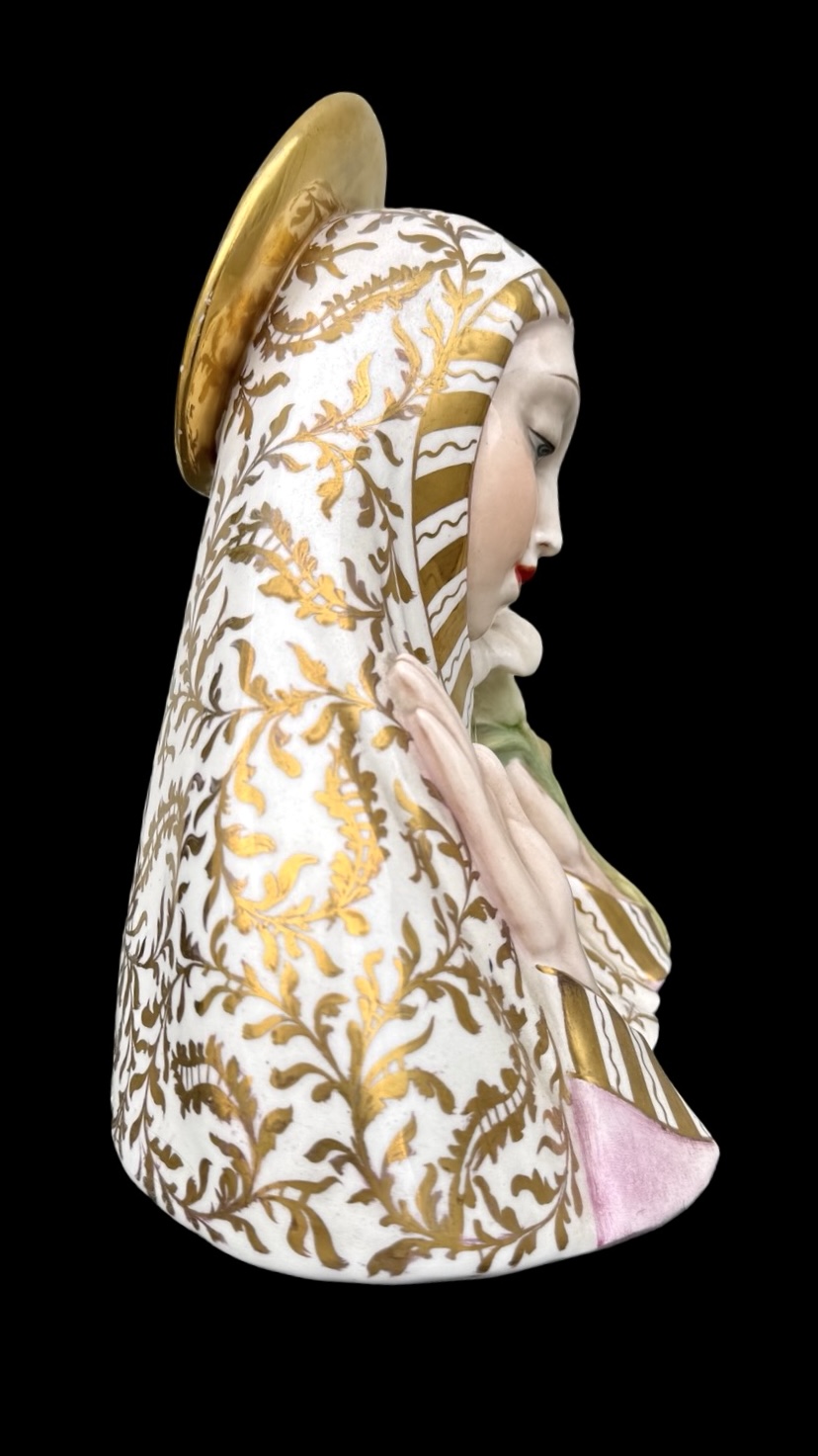Ceramic bust of Madonna with gold decorations. Cacciapuoti.