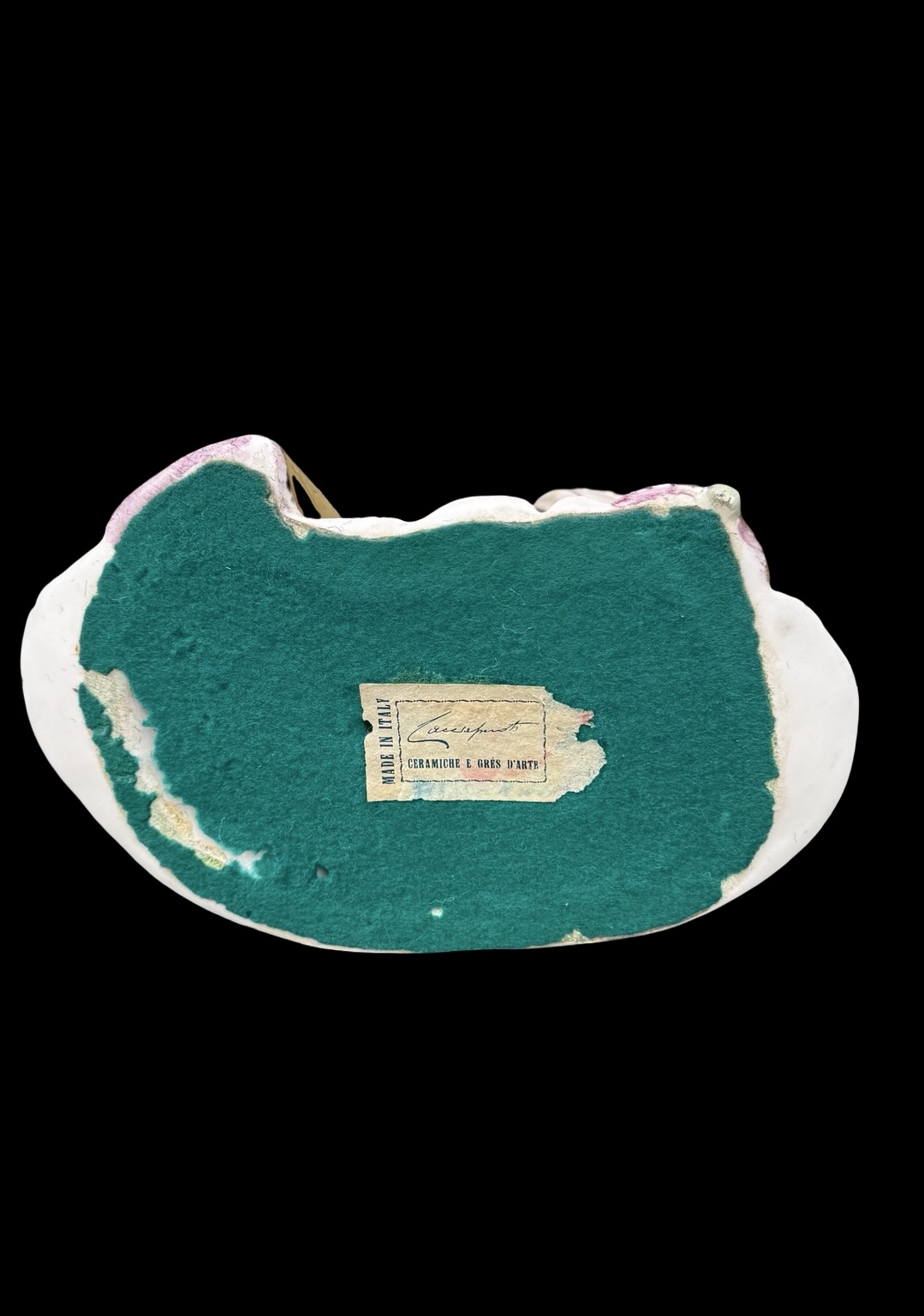 Ceramic bust of Madonna with flower and gold decorations. Cacciapuoti manufacture. Cm 20x20x13.