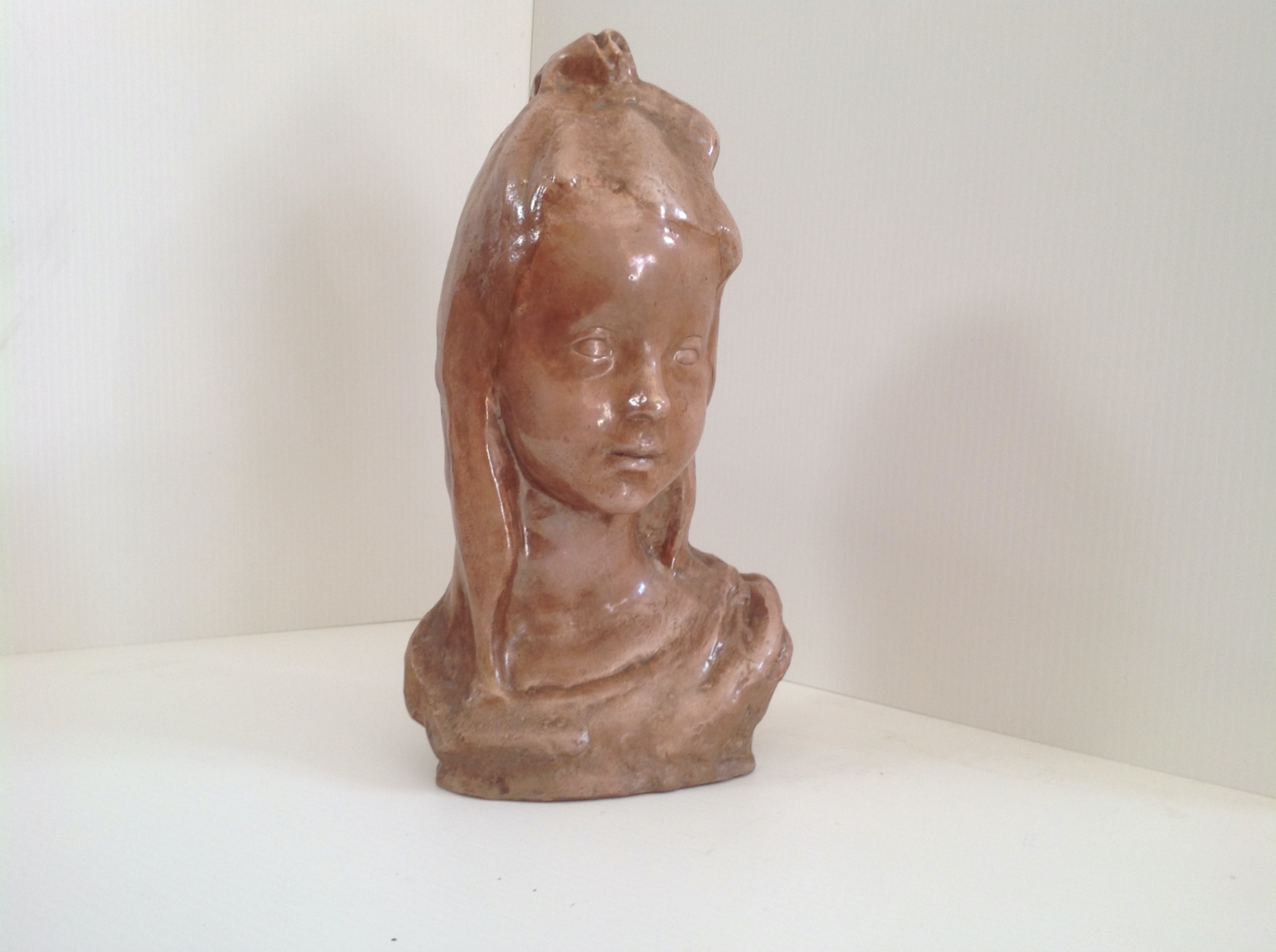 Testa di giovanetta,Ceramica,di Pietro Melandri, Faenza 1885-1976, ceramista,pittore e decoratore.Dim. h.cm.30. Buono stato di conservazione.