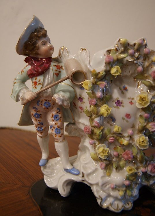 Antichi vasetti con personaggi in porcellana di Meissen del 1800