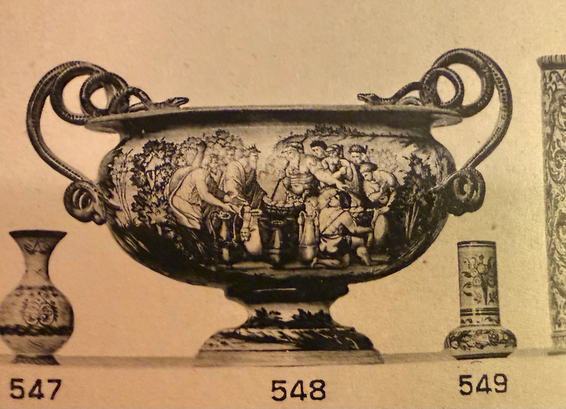 Large majolica vase decorated with a historical scene. Molaroni. Pesaro.