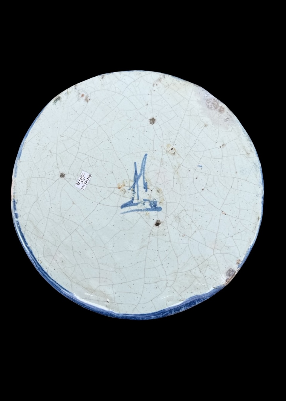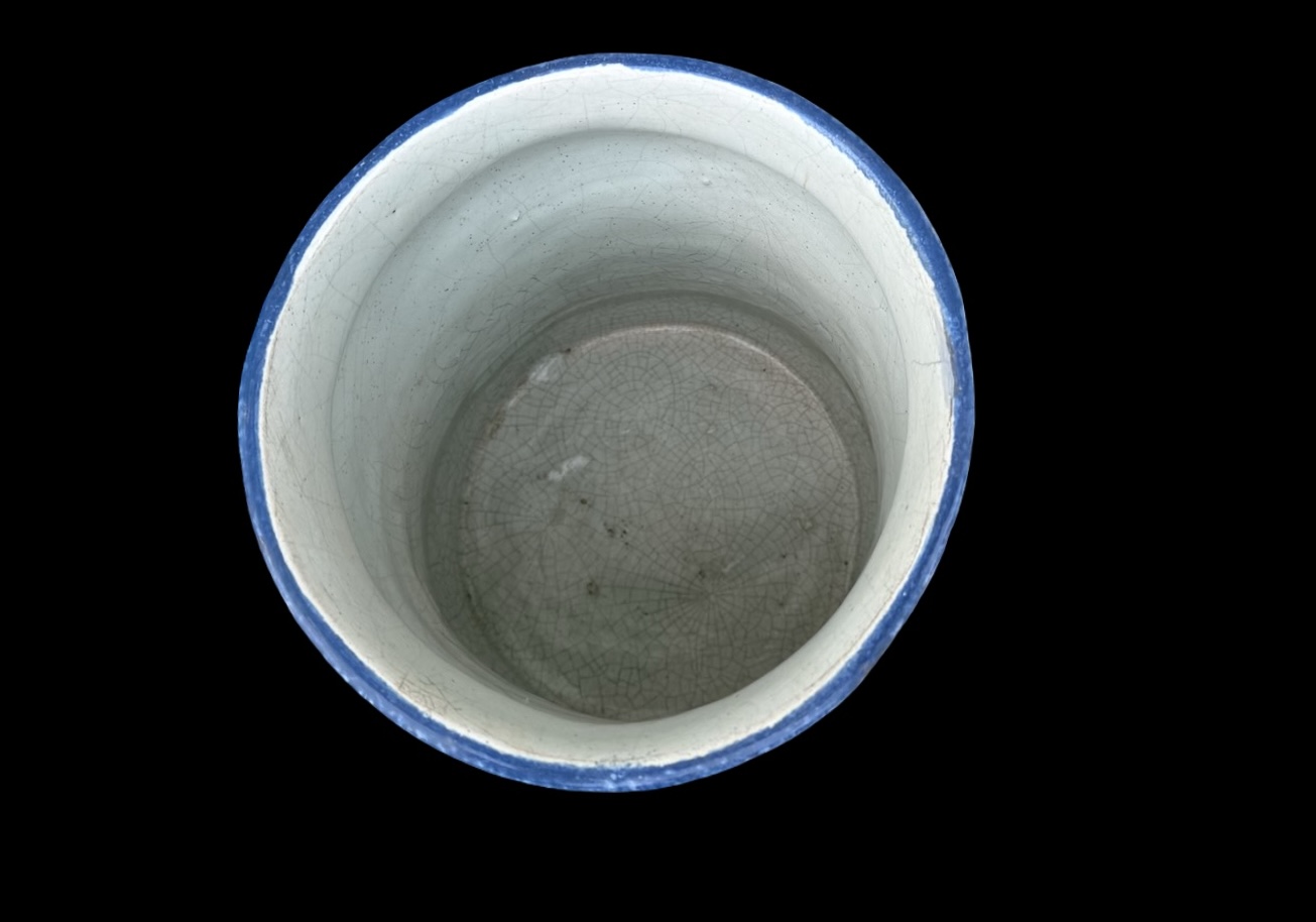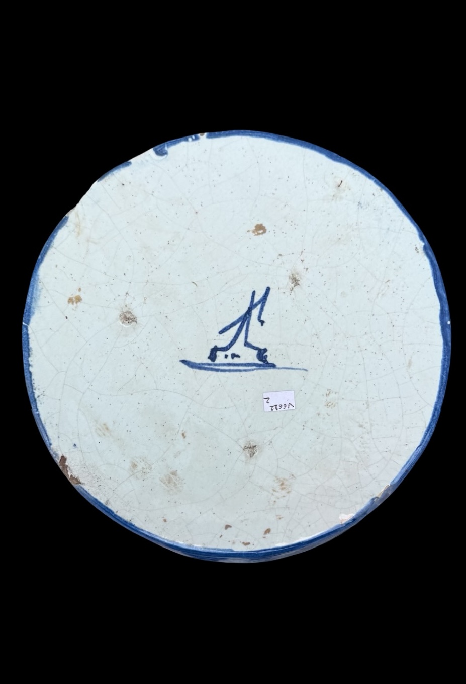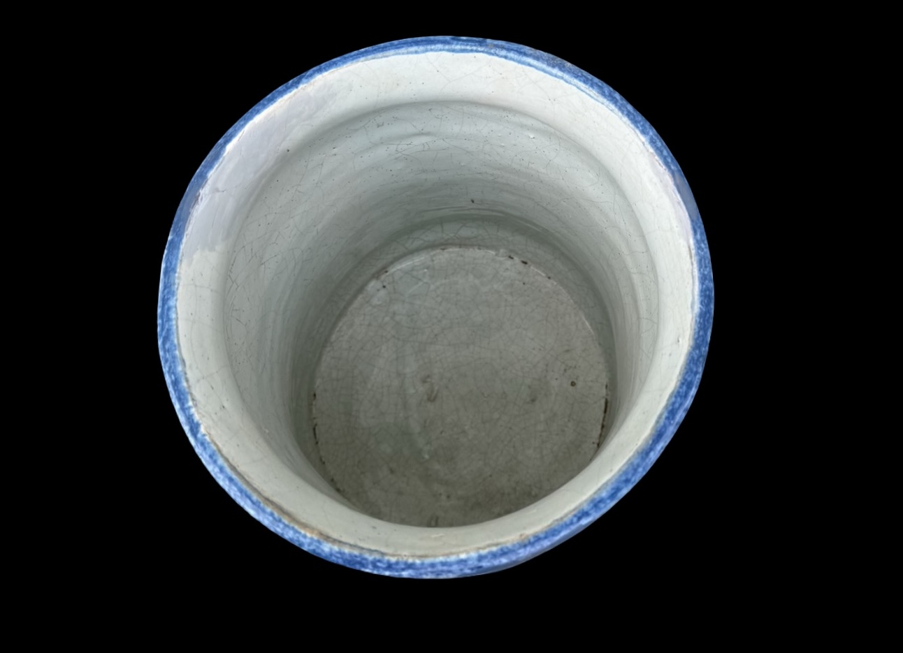 Pair of majolica albarello vases decorated in turquoise monochrome with figures in a rural setting. Lantern signature. Savona. Cm 25x19.