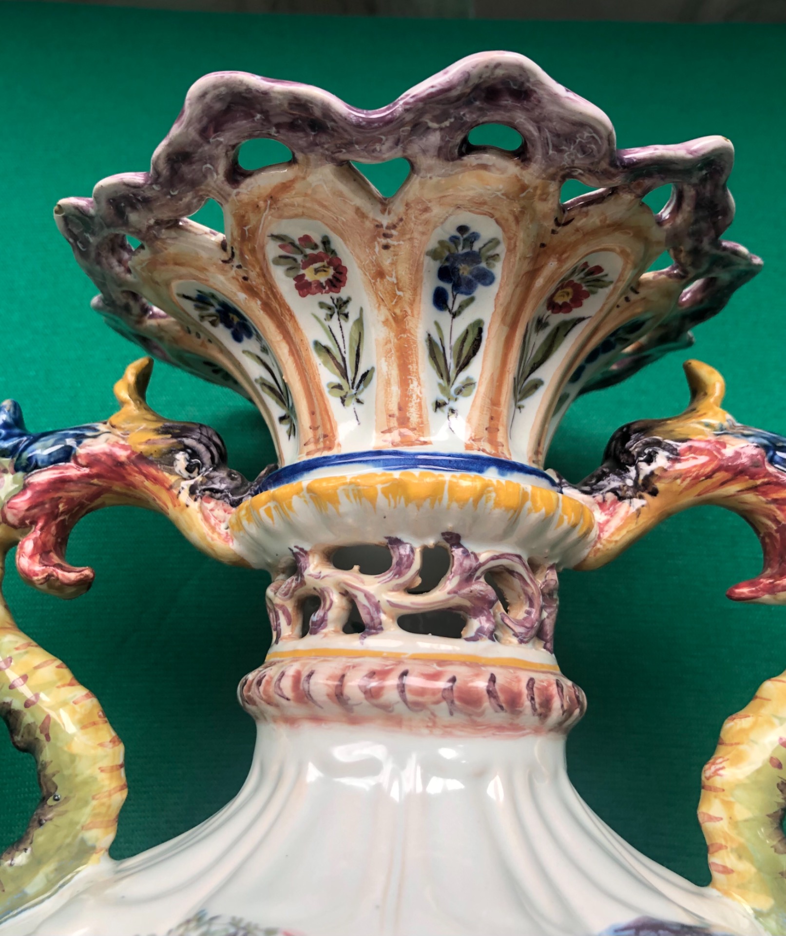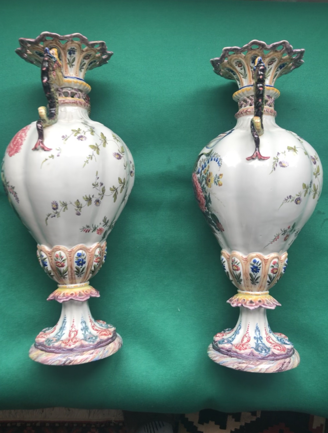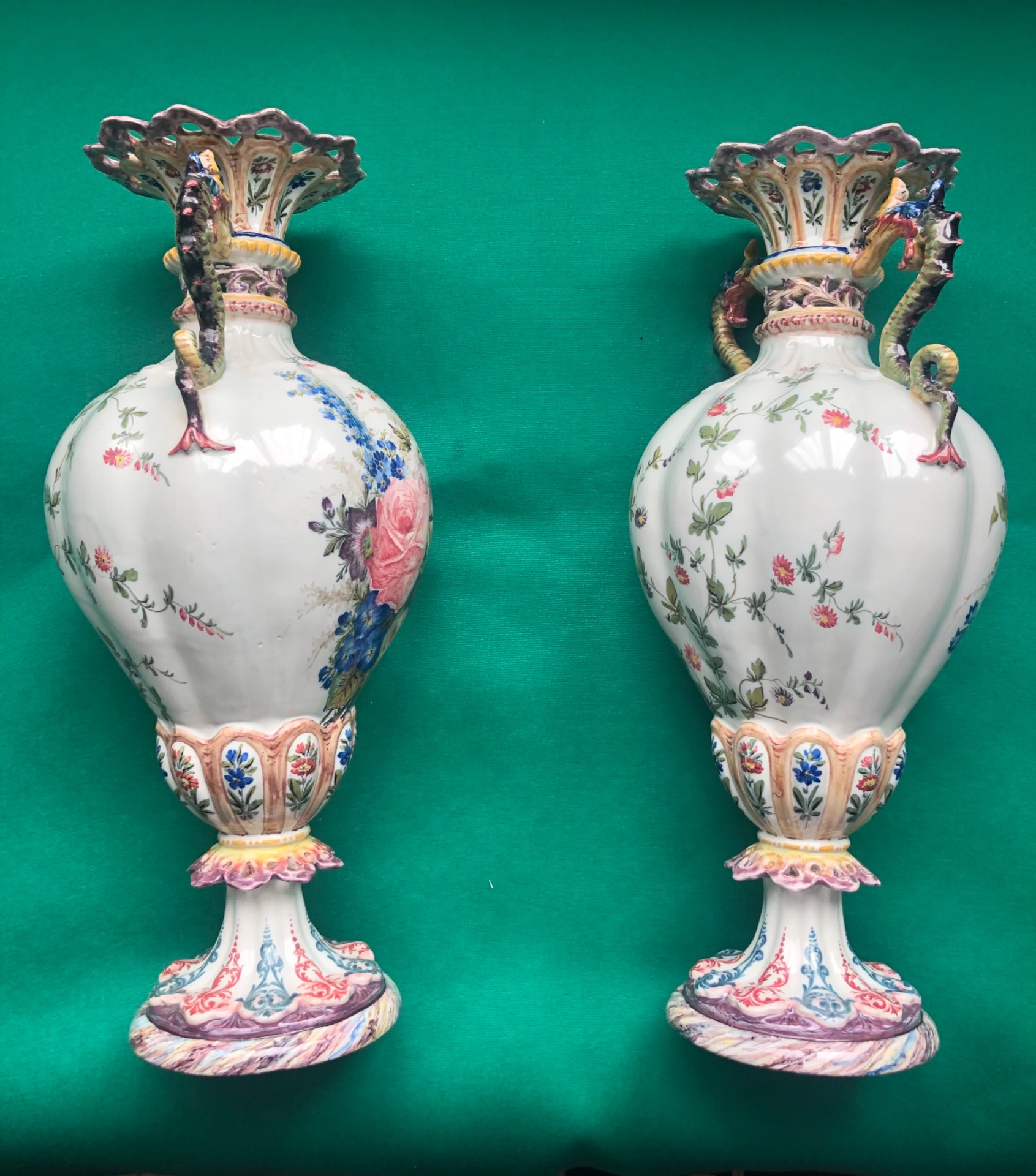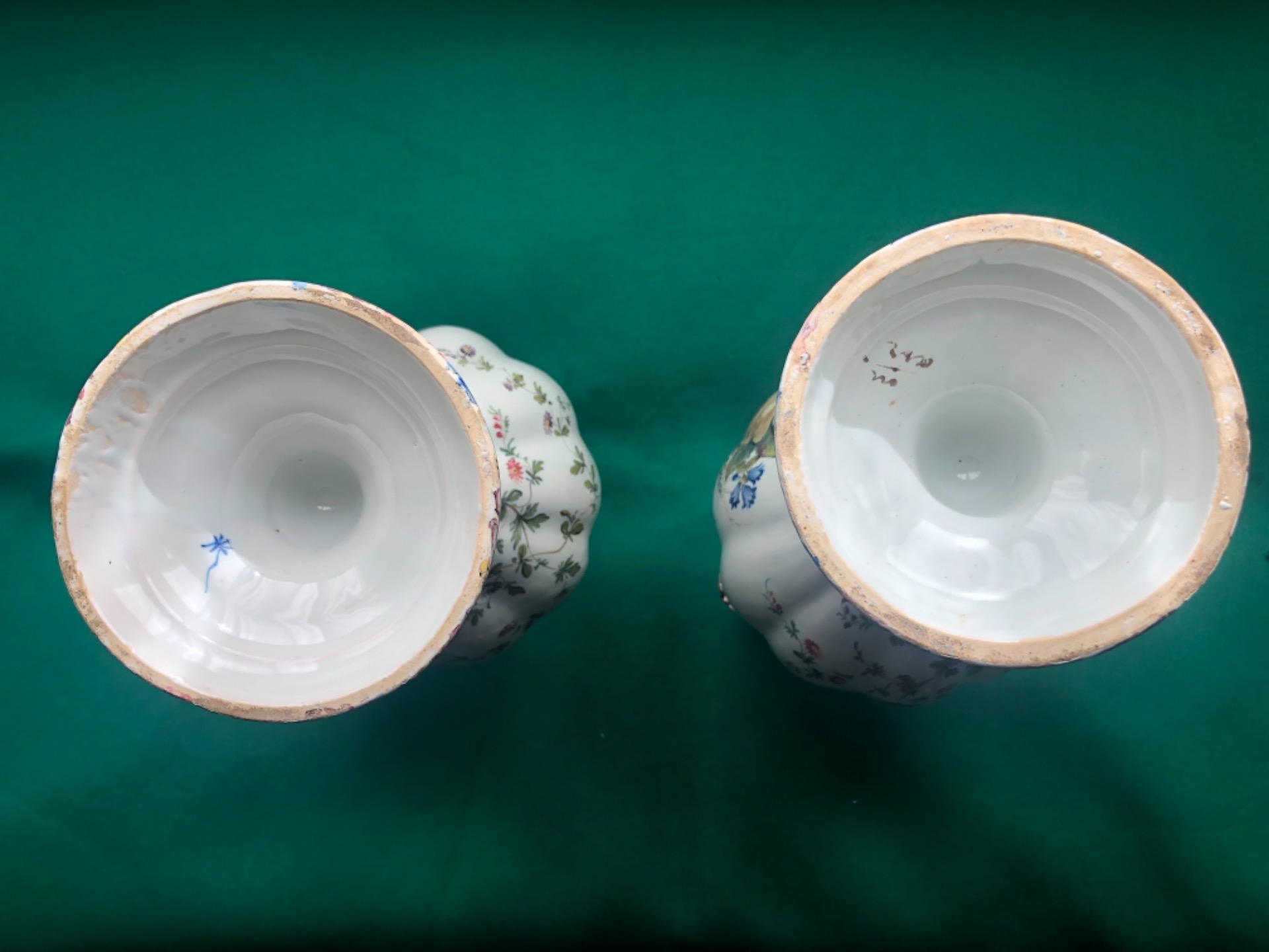 Pair of majolica vases decorated with flowers. Antonibon manufacture, Nove di Bassano.