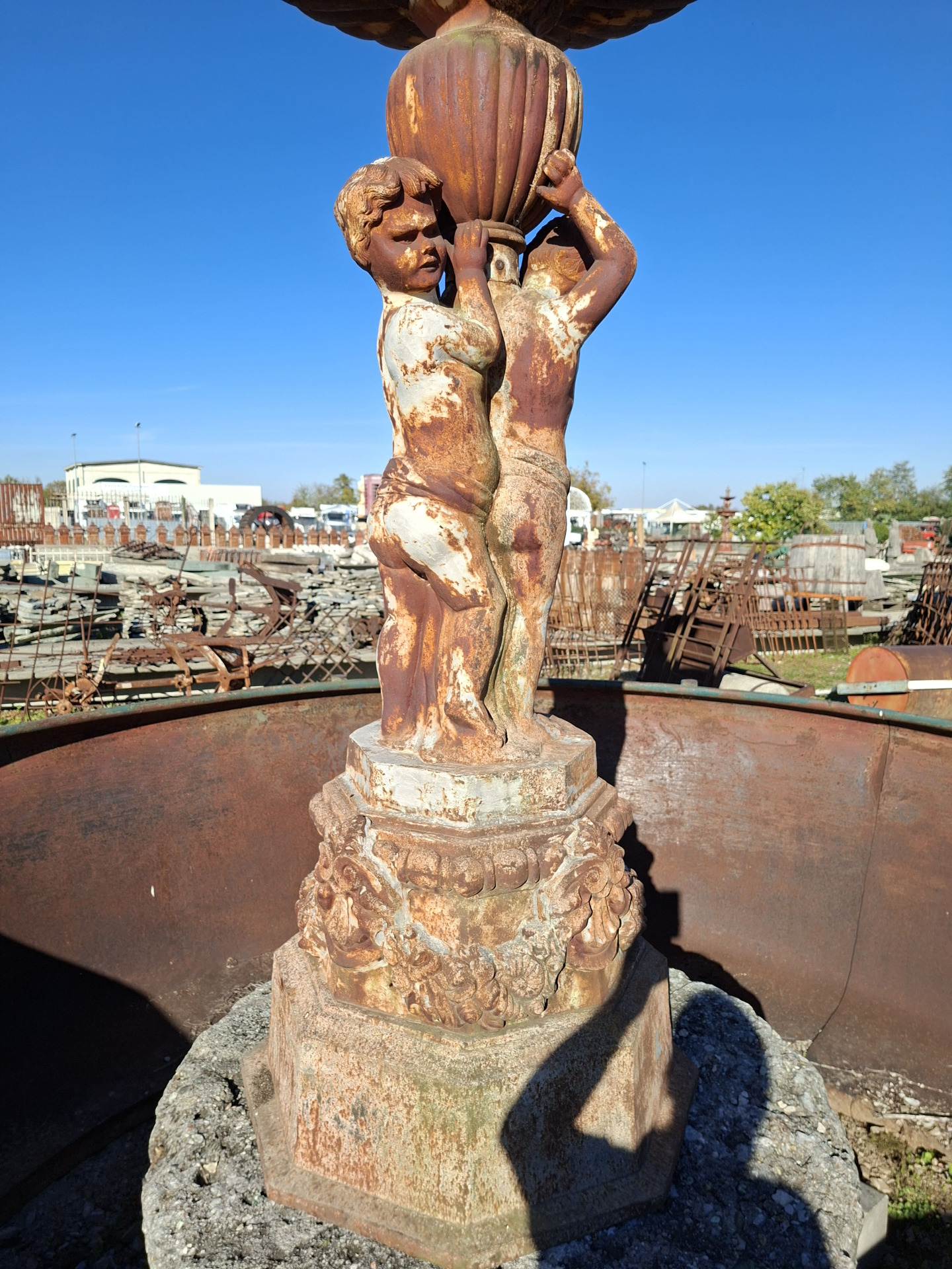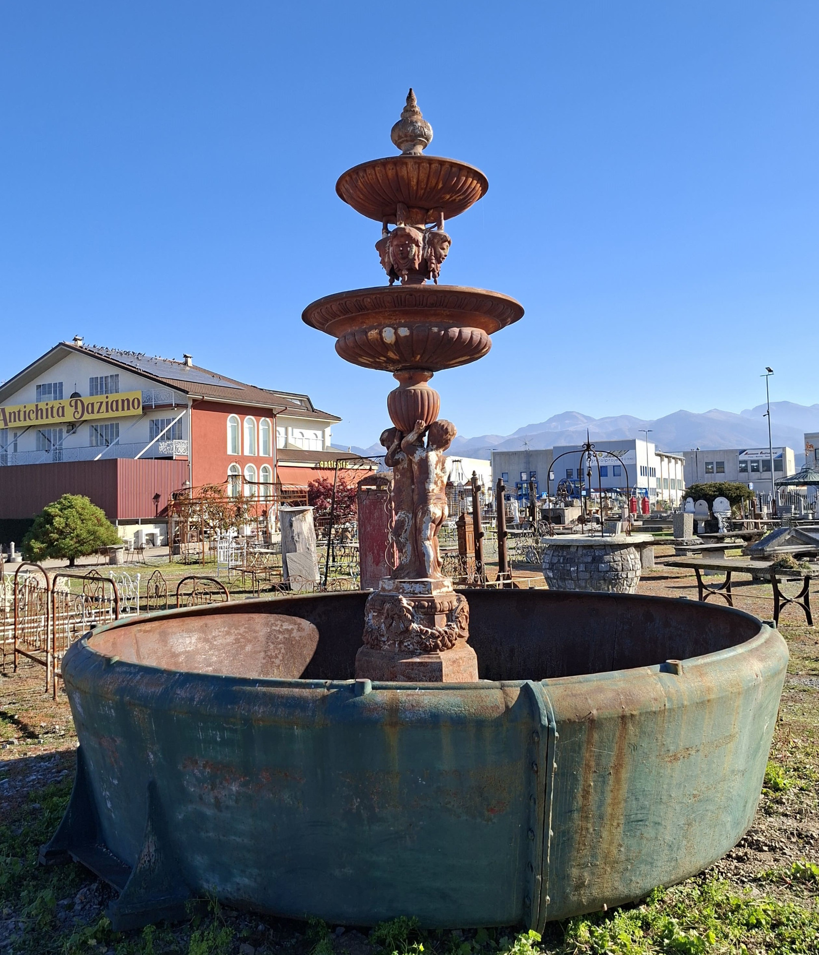 Fountain composed of a cast iron basin and a central element with cast iron putti. Basin dimensions: Height 105 cm – Internal diameter 380 cm – External diameter 400 cm Central element dimensions: Total height 370 cm, octagonal base diameter 80 cm. Shipping costs to be paid by the customer.