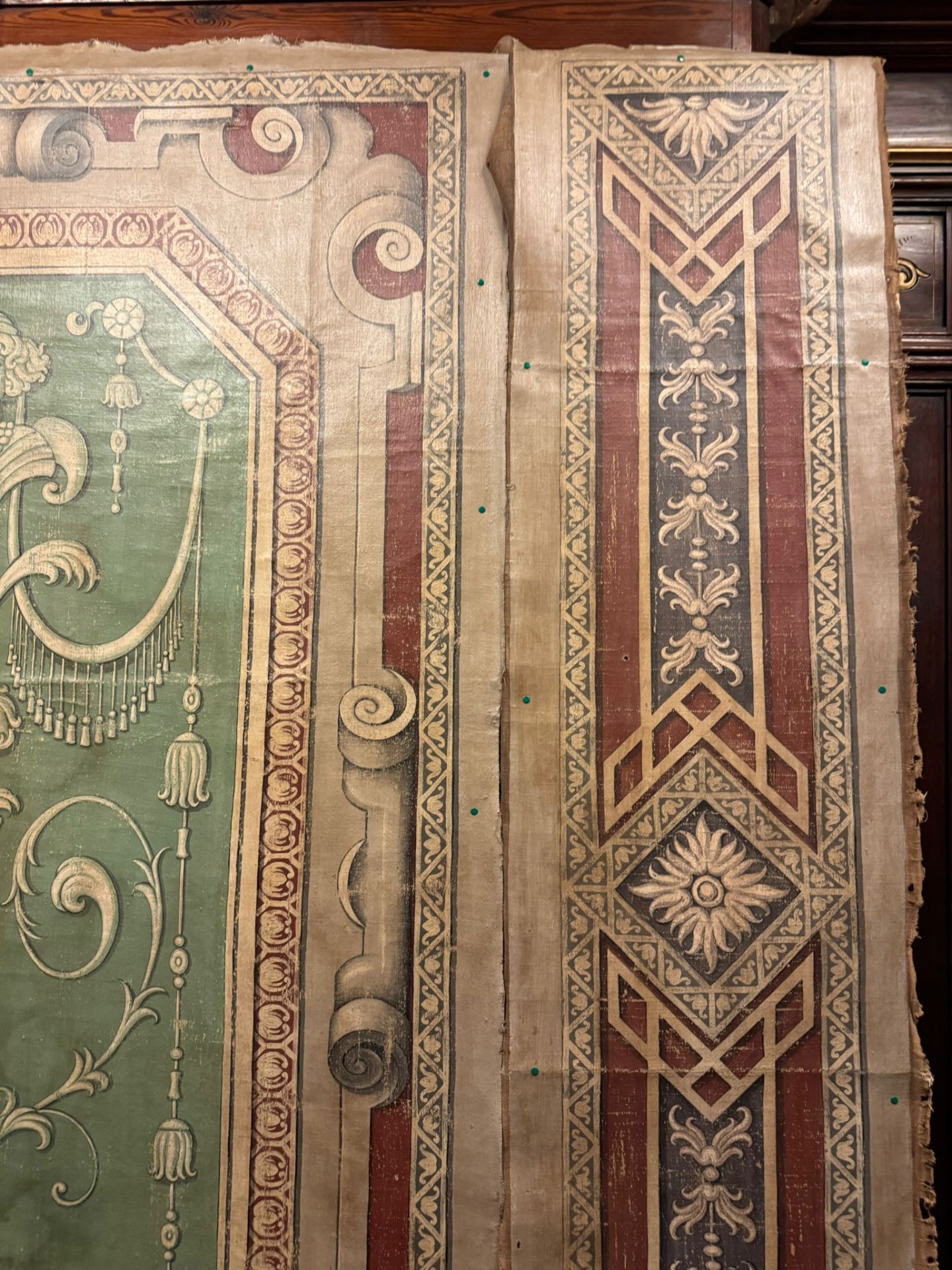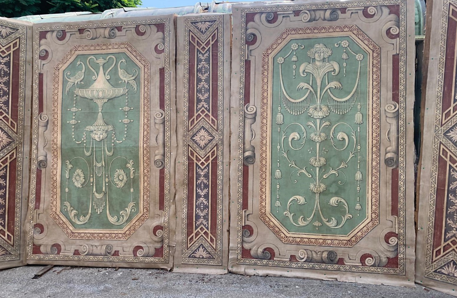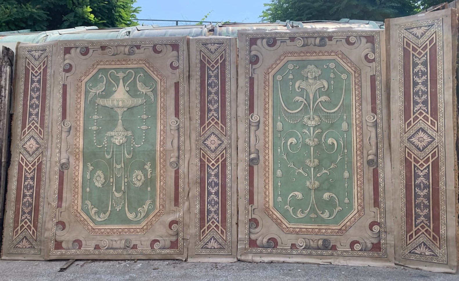 DARB244 - Antique boiserie painted on canvas, 18th century, maximum dimensions cm W 486 x H 260