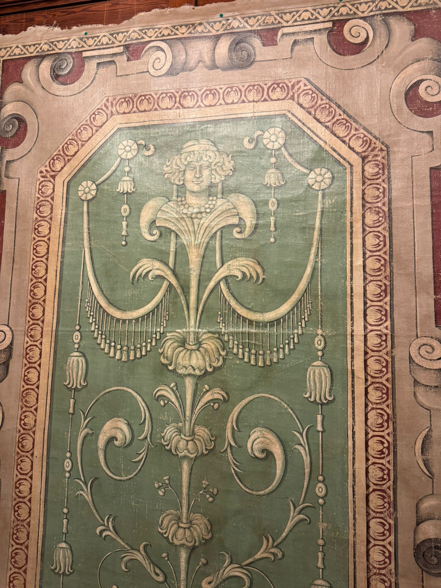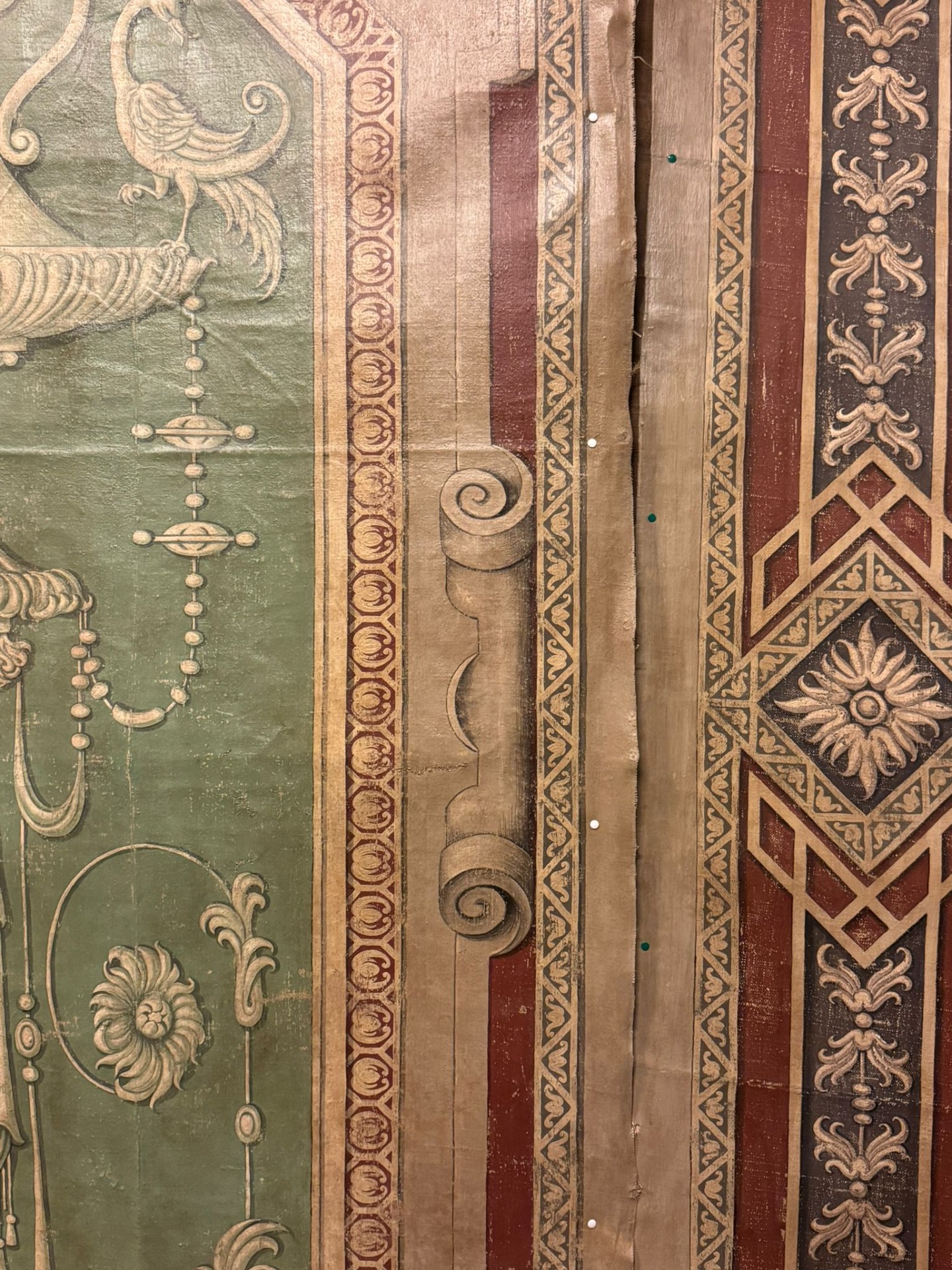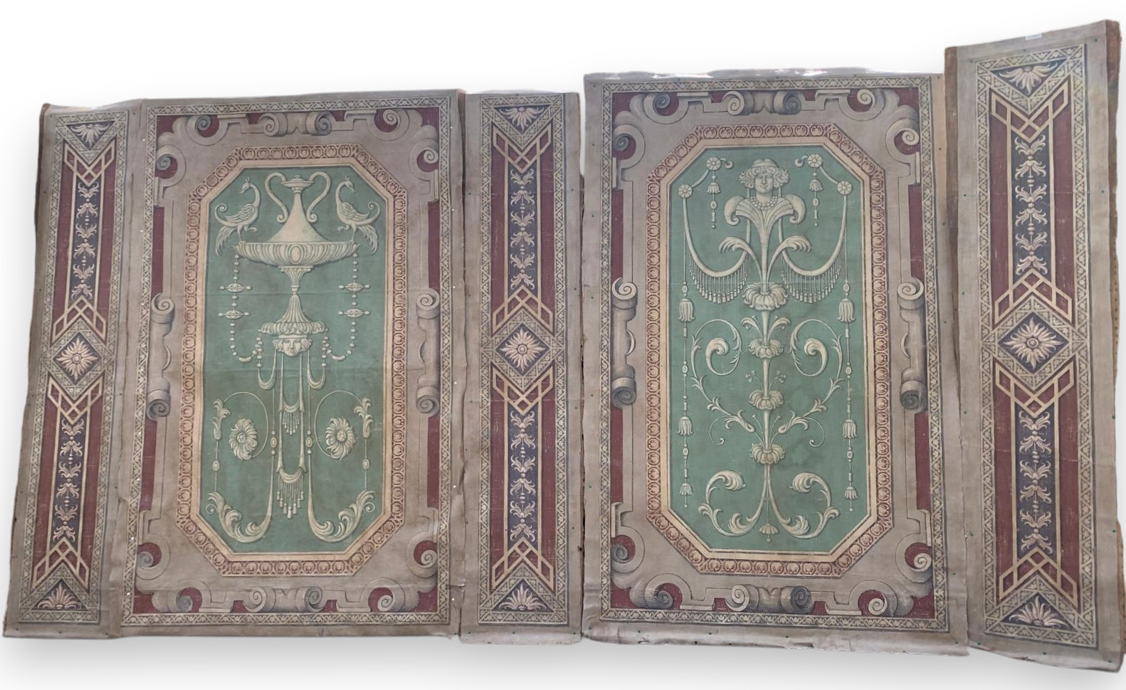 DARB244 - Antique boiserie painted on canvas, 18th century, maximum dimensions cm W 486 x H 260