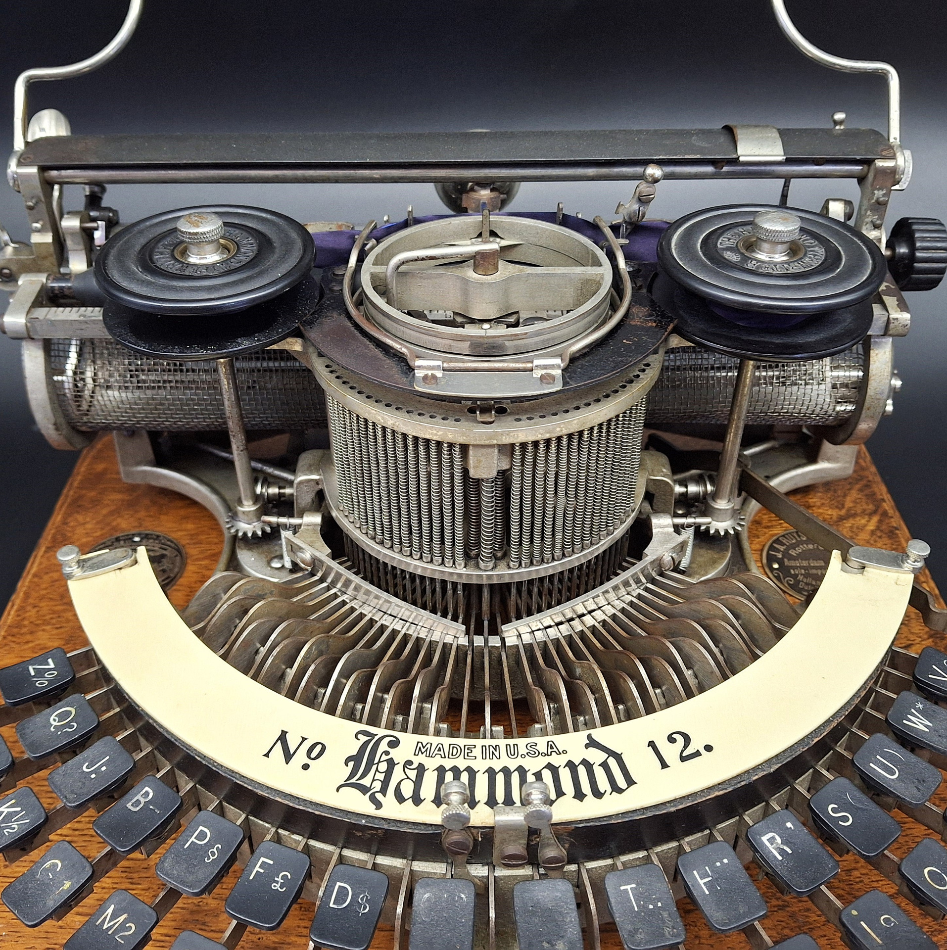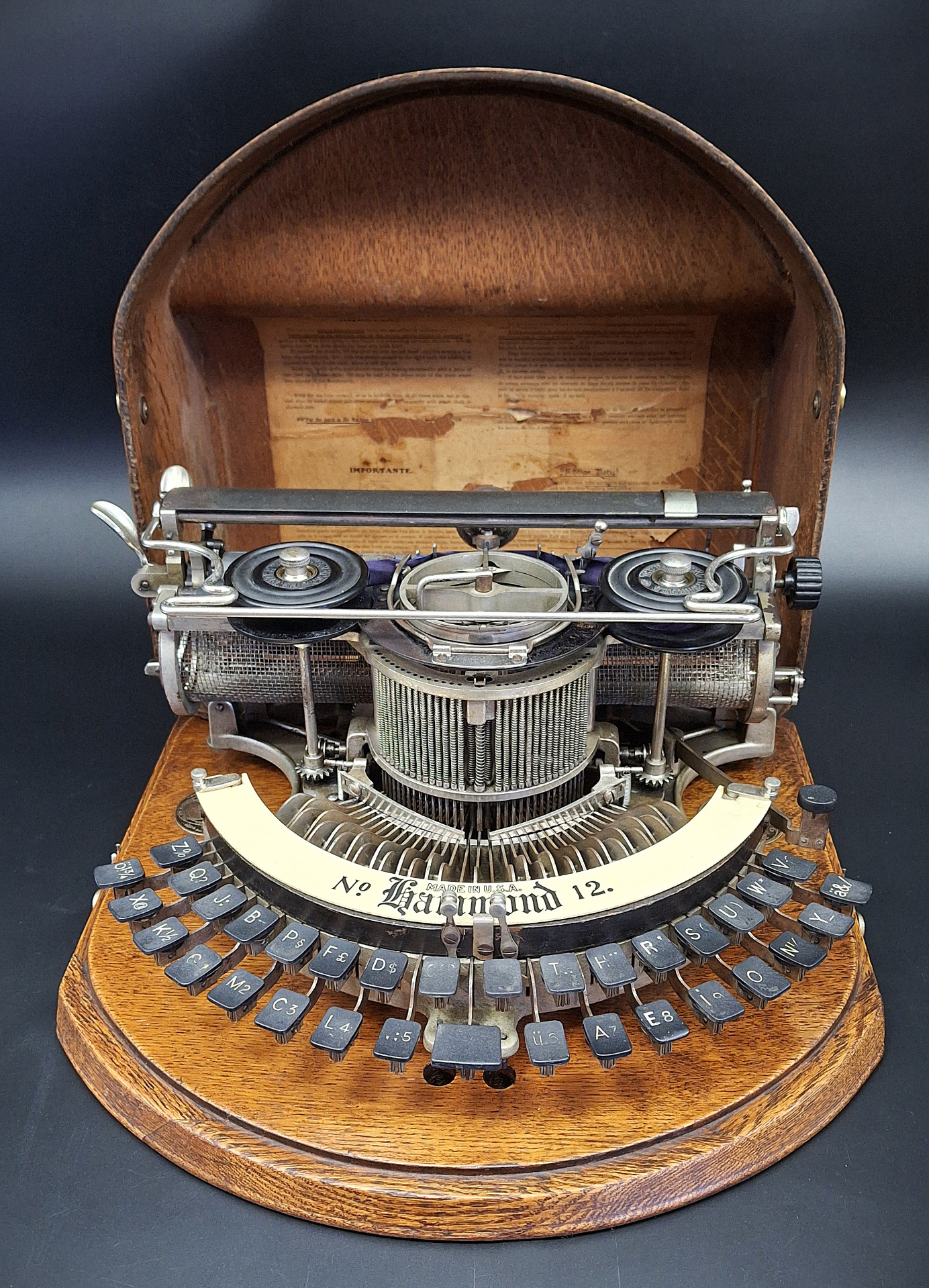 In 1905, the Hammond N.12 was introduced, a machine that looked almost identical to previous models but differed in the introduction of a vibrating ribbon on top of the turret which made it possible to make what was written completely visible and no longer hidden by the central turret.